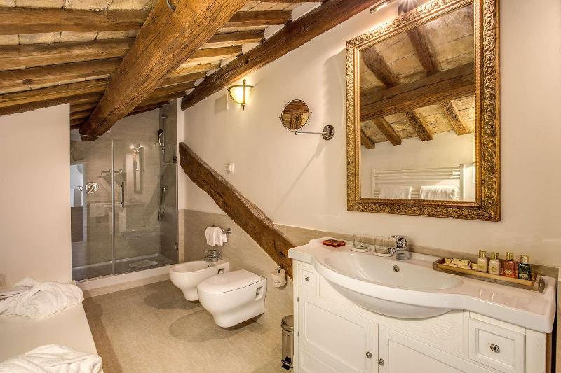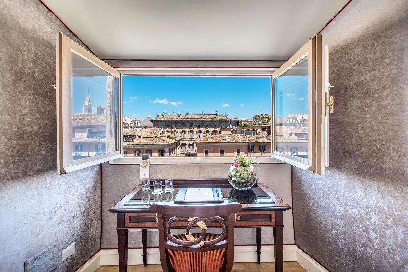 Alójate en Eitch Borromini Palazzo Pamphilj, en pleno centro de Roma, a pocos pasos de Piazza Navona y a 6 minutos a pie del Pantheon. Este hotel de 4 estrellas se encuentra a 1, 1 km de la Fontana di Trevi y a 0, 5 km del Campo de' Fiori. Disfruta de las vistas desde la azotea y aprovecha las comodidades, como acceso a internet inalámbrico de cortesía y servicios de conserjería. Siéntete como en casa en una de las 18 habitaciones con minibar y televisor LED. Tu cama cuenta con edredones de plumas y sábanas italianas Frette. El acceso inalámbrico a internet de cortesía te mantiene conectado y la programación por satélite te ofrece entretenimiento. Los baños privados con bañera o ducha disponen de artículos de tocador y secadores de pelo de cortesía. Satisface tu apetito para el almuerzo o la cena en Terrazza Borromini, un restaurante especializado en cocina mediterránea, o quédate en tu habitación y aprovecha el servicio a la habitación (con horario limitado). Sacia tu sed con tu bebida favorita en el bar o lounge. Todos los días se sirve un desayuno gratuito preparado al momento de 07:00 a 10:30. Tendrás a tu disposición periódicos gratuitos en el vestíbulo, servicio de tintorería/lavandería y recepción disponible las 24 horas. Se ofrece servicio de transporte al aeropuerto (ida y vuelta) de pago (disponible las 24 horas). Las distancias se muestran con una precisión de 0, 1 millas y kilómetros. Piazza Navona: 0, 1 km. Corso Vittorio Emanuele II: 0, 3 km. Río Tíber: 0, 4 km. Piazza della Rotonda: 0, 5 km. Campo de' Fiori: 0, 5 km. Piazza della Minerva: 0, 5 km. Pantheon: 0, 5 km. Palazzo Farnese: 0, 6 km. Palacio de Justicia: 0, 6 km. Via Giulia: 0, 7 km. Castel Sant'Angelo: 0, 8 km. Largo di Torre Argentina: 0, 9 km. Via del Corso: 0, 9 km. Ministerio de Justicia: 0, 9 km. Ponte Sisto: 0, 9 km. Los aeropuertos más cercanos son: Aeropuerto Internacional de Roma-Fiumicino (FCO): 30, 9 km.