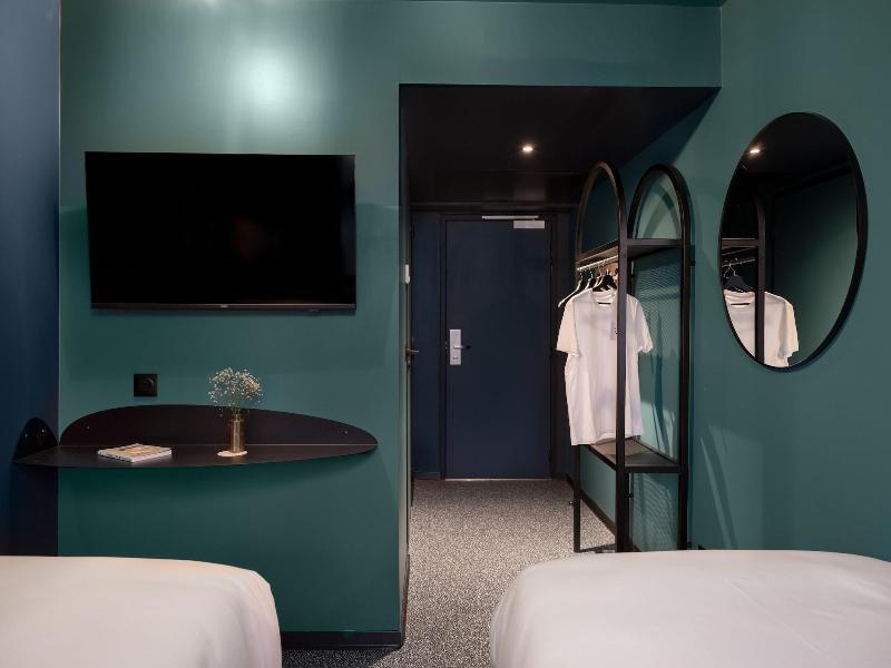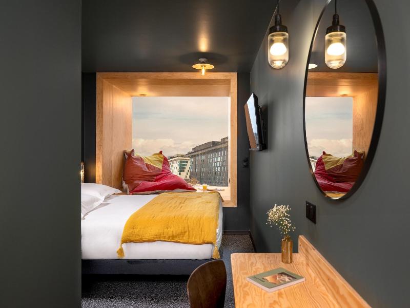 ¡Bienvenido a Eklo Hotel Paris Porte de Versailles! Ya sea que viajes en familia, en grupo, en pareja o solo, Eklo te ofrece 304 habitaciones cómodas y elegantes para cada necesidad. Ubicado en una calle arbolada a solo 5 minutos a pie de la estación de metro Porte de Versailles, este hotel ecológico de estilo de vida se encuentra a 4 km de la Torre Eiffel y a 7 km del Museo del Louvre. Disfruta de nuestro animado restaurante y bar, o relájate en la terraza de la azotea con vistas excepcionales de la Torre Eiffel. El hotel ofrece un ambiente relajado, abierto tanto a huéspedes como a locales. La cocina compartida totalmente equipada está disponible las 24 horas, al igual que nuestras amplias zonas de coworking. También ofrecemos salas de reuniones bien equipadas; contáctanos para reservar. Nuestros dormitorios para 6 personas se pueden reservar de forma privada, ideales para grupos, familias o despedidas de soltero/a. Todas las habitaciones cuentan con ropa de cama suave, ropa de cama de primera calidad de la marca francesa Merinos, enchufes, espacio de almacenamiento y baño privado con ducha, espejo, inodoro y artículos de aseo orgánicos. Eklo Paris Expo Porte de Versailles: ¡un hotel económico donde la comunidad y la sostenibilidad son lo más importante!