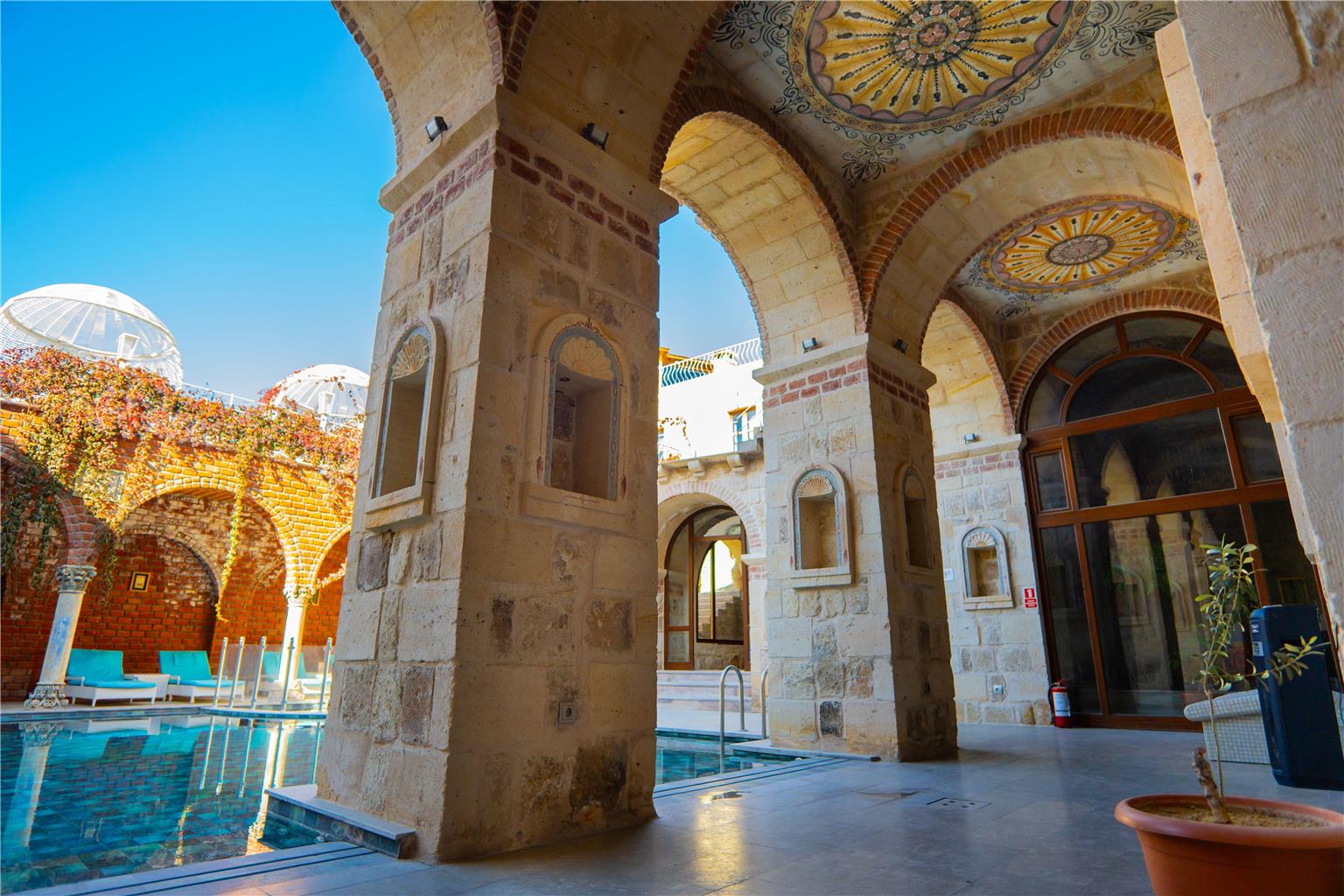 Near Ortahisar Castle, our retreat is located in central Cappadocia. Surrounded by rock formations and fairy chimneys, our property offers a tranquil cave accommodation experience. Goreme is five kilometers away while Urgup is a 15-minute drive from our hotel. Our outdoor pool and restaurant and bar complete your stay.