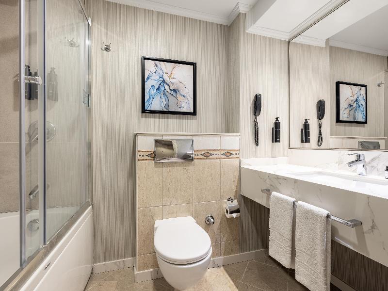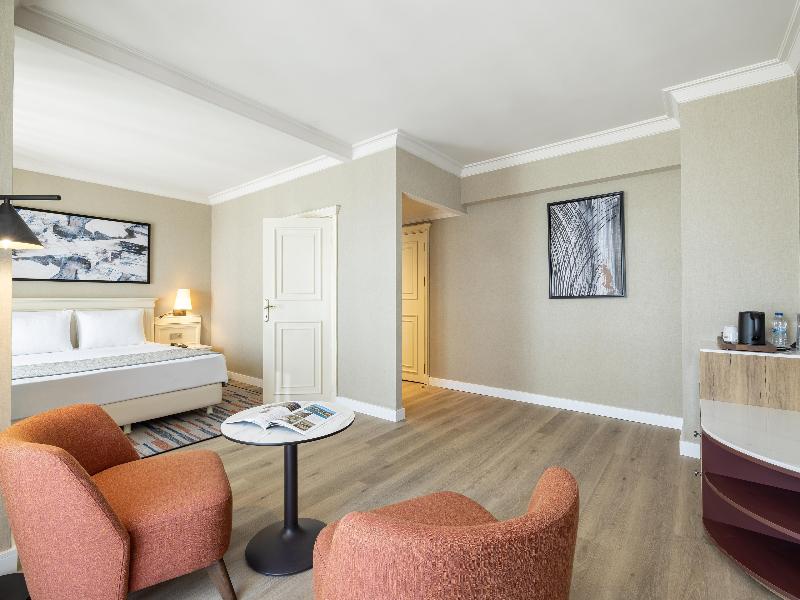 Este atractivo y exclusivo hotel se encuentra en Taksim, el distrito financiero y punto de encuentro de Estambul. Está a solo cinco minutos a pie de la parada de metro Taksim, lo que facilita a los huéspedes la exploración de la ciudad, y a un corto paseo del Centro de Convenciones y Exposiciones Lutfi Kirdar y del Centro Cultural Ataturk. Esta ubicación es ideal para viajes de negocios, y el hotel también cuenta con cuatro salas de reuniones amplias y elegantes, bien equipadas con la última tecnología para presentaciones y seminarios. El hotel está lujosamente decorado con diseños de influencia otomana, y las habitaciones disponen de carta de almohadas, servicio de habitaciones las 24 horas y servicio de niñera bajo petición. El centro de bienestar ofrece entrenadores personales para diseñar programas de fitness individuales, así como una opulenta piscina cubierta, sauna, baño turco y una variedad de masajes. Puedes disfrutar de una copa después de un largo día de turismo o reuniones de negocios en el clásico bar de la planta baja o en el bar de la terraza con magníficas vistas de la ciudad. En nuestro hotel, es obligatorio el uso de gorro de baño en la piscina y se puede adquirir en el mismo hotel.