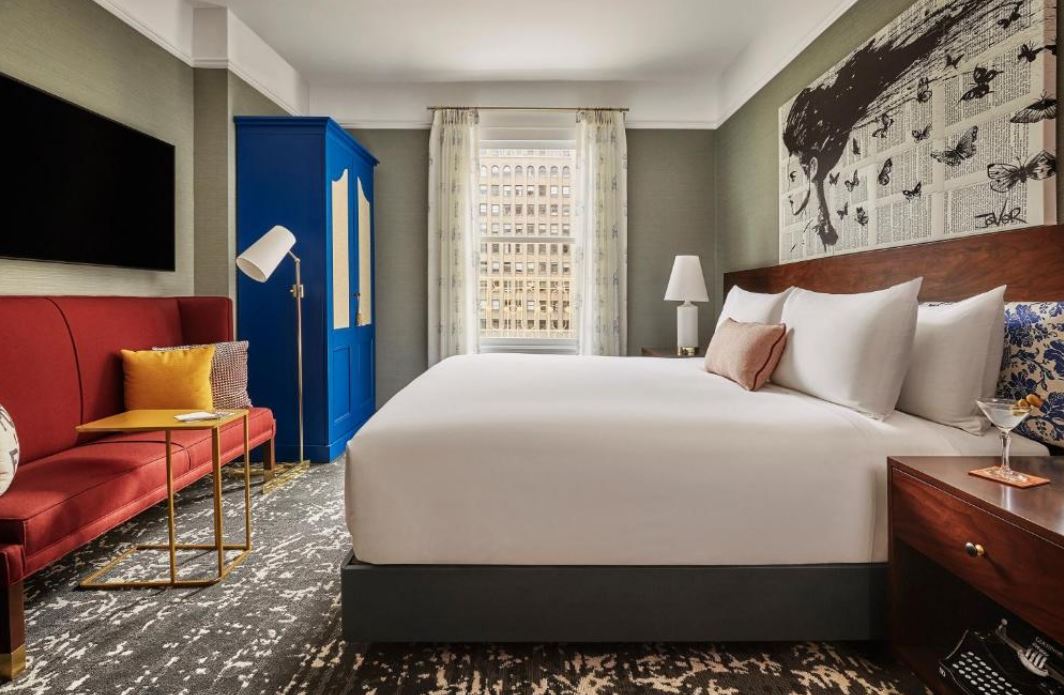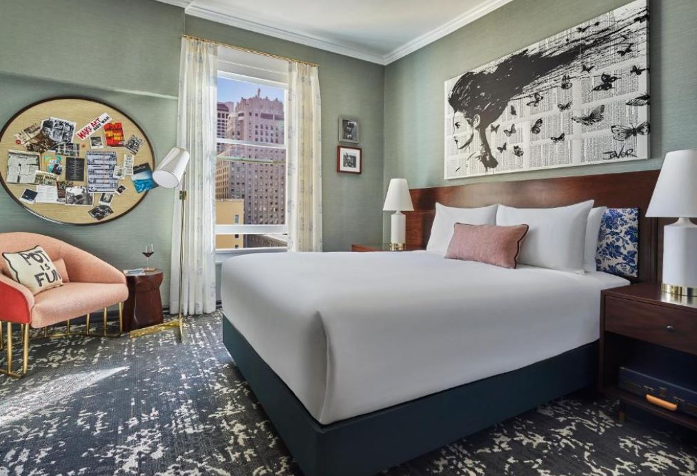 El Hotel Emblem San Francisco, a Viceroy Urban Retreat cuenta con muebles de temática literaria, arte original y música en vivo. Las acogedoras habitaciones del hotel están equipadas con televisores inteligentes, albornoces y cafeteras Nespresso.