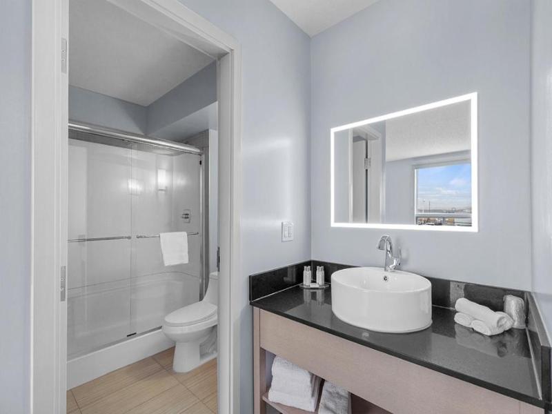 Disfruta de una cómoda estancia en el Emerald Hotel & Suites, convenientemente ubicado en el barrio Sunridge de Calgary, a un corto trayecto en coche del Calgary Zoo y el TELUS Convention Centre. Nuestras 150 habitaciones, amuebladas individualmente, cuentan con microondas, TV de pantalla plana con cable, wifi gratuito y baño privado con artículos de aseo gratuitos. Aprovecha nuestra recepción 24 horas, personal multilingüe, caja fuerte y aparcamiento gratuito. Stampede Park y el Scotiabank Saddledome se encuentran a 10 minutos en coche.