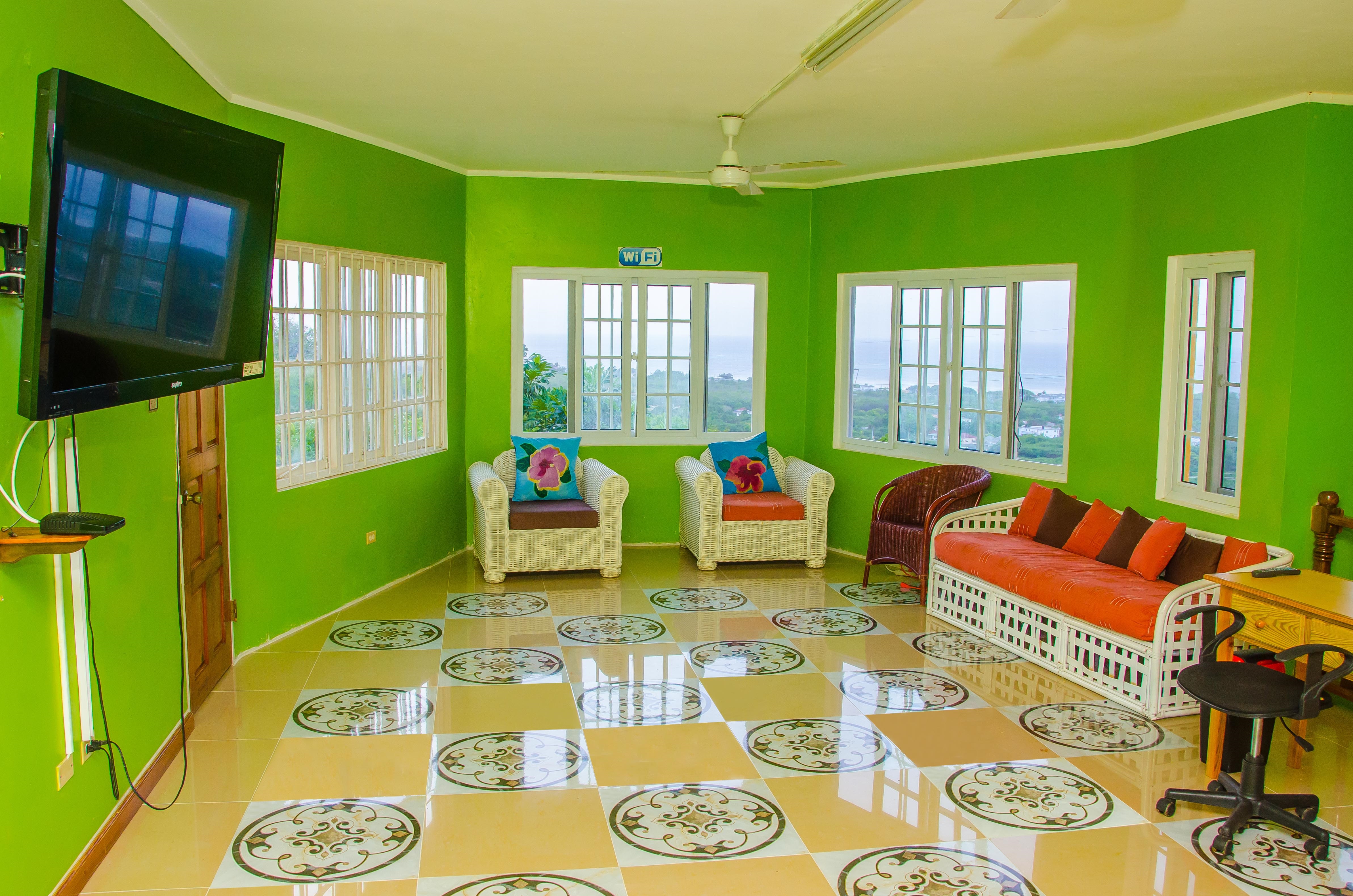 El hotel está enclavado en una colina que domina la ciudad de Montego Bay y el Océano. El complejo es un romántico hotel estilo Bed & breakfast, donde los huéspedes pueden disfrutar de unas vacaciones muy privadas. Hay plazas de aparcamiento a disposición de los huéspedes que llegan en coche. Las habitaciones disponen de agua caliente, servicio diario de limpieza, plancha, cuarto de baño, cafetera, habitaciones para no fumadores, terraza, TV (cable/satélite), A/C, frigorífico y DVD/VCR. El hotel ofrece los servicios siguientes: servicio a la habitaciones, servico de café (gratuito), bañera de hidromasaje, servicio de recepción 24 horas, así como servicio de lavandería, acceso a Internet y piscina. Dirección: 261 Poinciana Drive, Greenwood, Montego Bay, St. James, Jamaica.