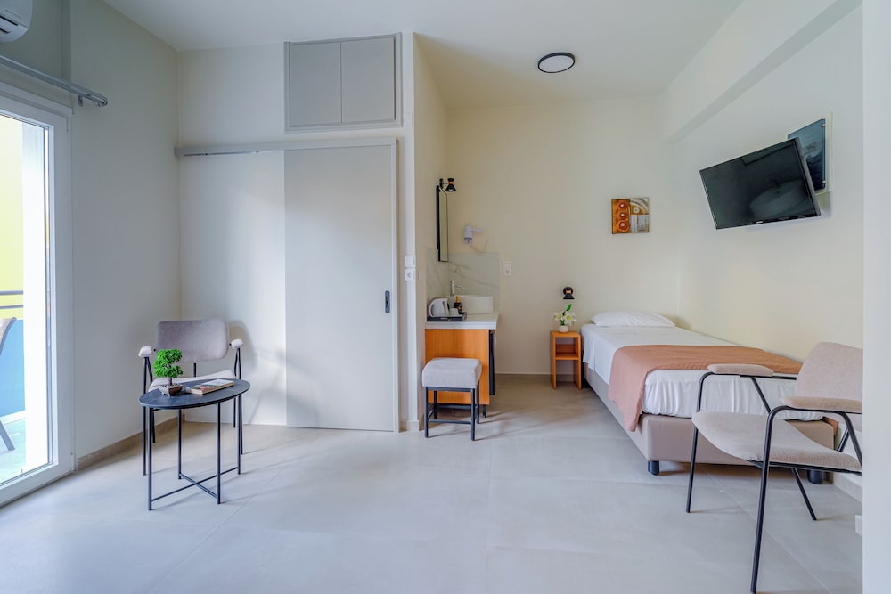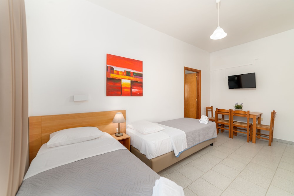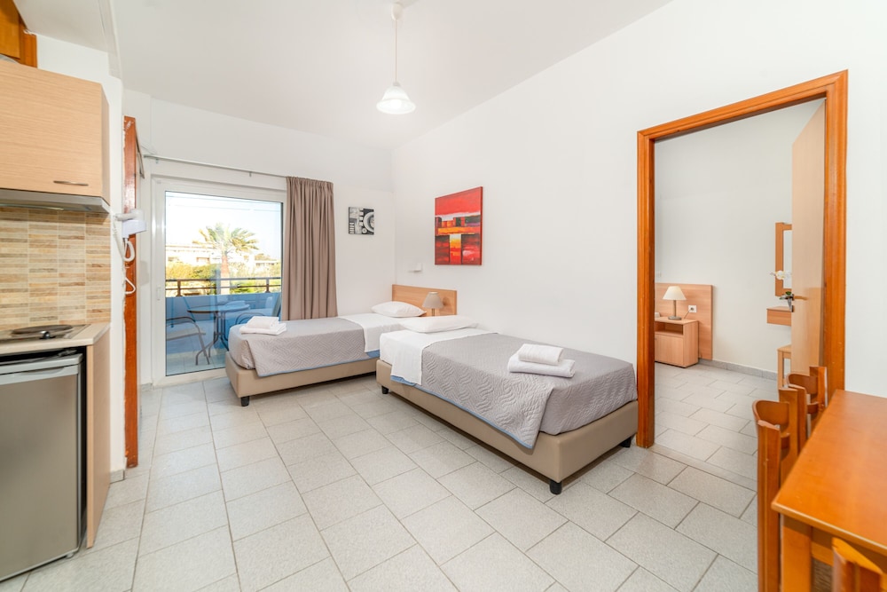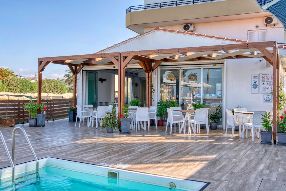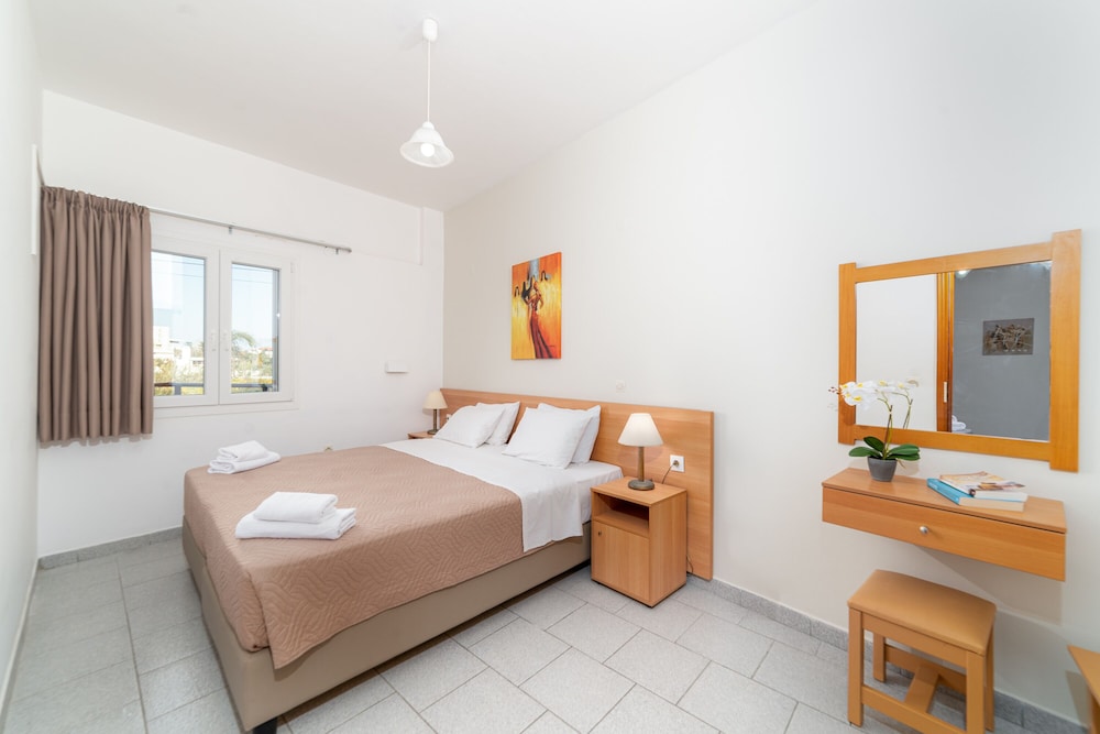 Si te alojas en Emi Apartments, en Malevizi (Ammoudara), estarás a poca distancia de Estadio Pankritio y Museo de Historia Natural de Creta. Este complejo de apartamentos se encuentra cerca de Estadio Theodoros Vardinogiannis y de Muros venecianos.Habitaciones Te sentirás como en tu propia casa en una de las 27 habitaciones con aire acondicionado(con cargo extra), frigorífico y televisor de pantalla plana. Las habitaciones disponen de balcón. Mantén el contacto con los tuyos gracias a la conexión a Internet wifi gratis. El cuarto de baño está provisto de ducha y secador de pelo.Para comer Apaga la sed con tu bebida favorita en el bar o lounge. Todos los días se sirve un desayuno de pago.Servicios de negocios y otros Tendrás atención multilingüe, lavandería y café en las zonas comunes a tu disposición. Hay un aparcamiento sin asistencia gratuito disponible.