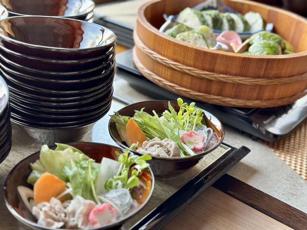 Si decides alojarte en EN HOTEL Ise de Ise, estarás a pocos pasos de Iseshima Jindai Onsen y Meoto Iwa (Wedded Rocks). Además, este hotel se encuentra a 1,1 km de Templo Komyoji y a 2,4 km de Museo Jingu Chokokan. Te sentirás como en tu propia casa en cualquiera de las 143 habitaciones con aire acondicionado, frigorífico y televisor de pantalla plana. Para los momentos de ocio, tienes un televisor con películas de pago y conexión a Internet por cable y wifi gratis. El baño privado con ducha y bañera combinadas está provisto de artículos de higiene personal gratuitos y secador de pelo. Entre las comodidades, se incluyen hervidor eléctrico y un ventilador, además de un servicio de limpieza disponible todos los días. EN HOTEL Ise sirve deliciosas comidas en Ise Miyabi. Se sirve un desayuno continental todos los días de 7:00 a 10:00 con un coste adicional. Tendrás servicio de recepción 24 horas, consigna de equipaje y lavandería a tu disposición. Hay un aparcamiento sin asistencia gratuito disponible.