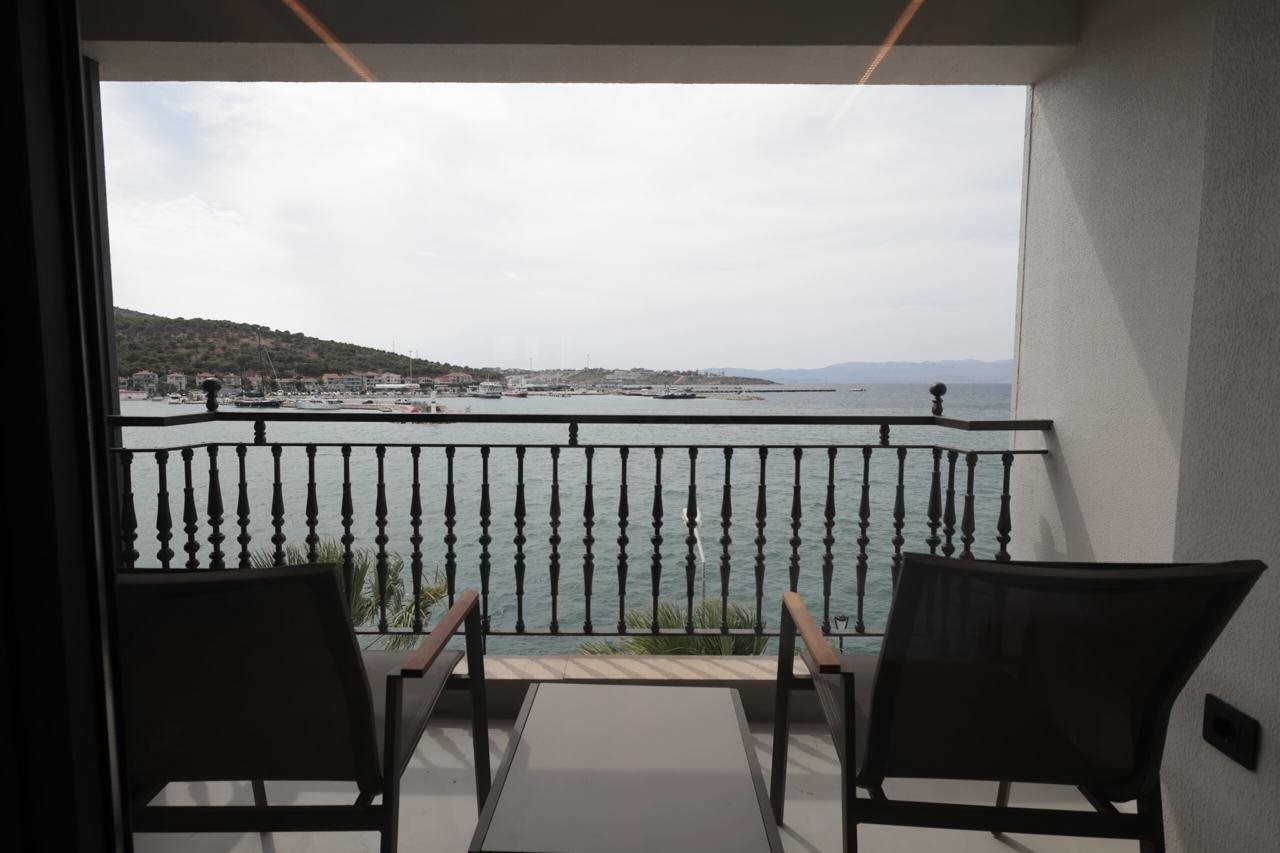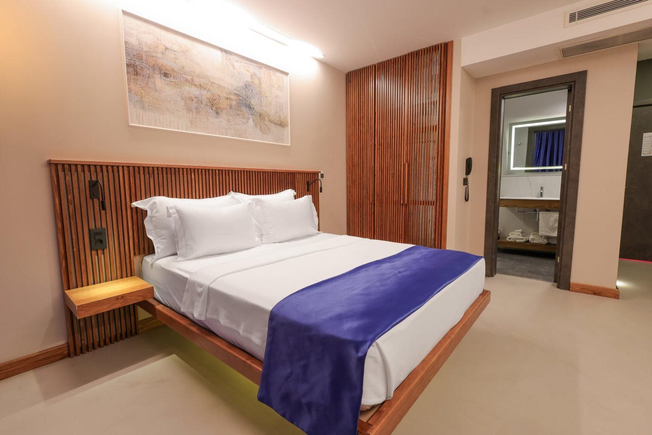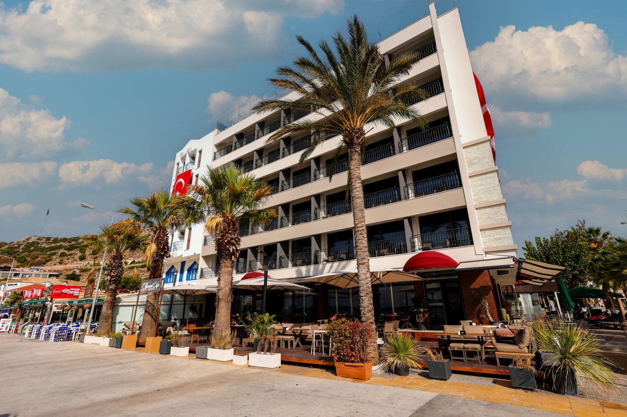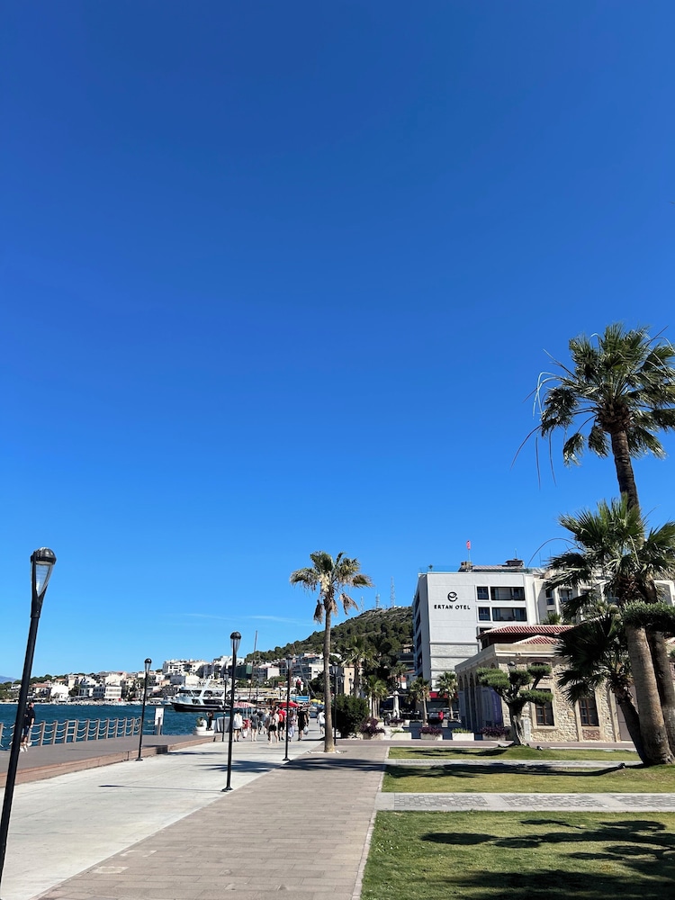 "Instalaciones y servicios incluidos Aire acondicionado, Conexión Wi-Fi, Se admiten mascotas, Alquiler de bicicletas, bar, restaurante, Cambio de moneda, Recepción 24 horas, Lavandería, Caja fuerte, Ascensor, Servicios de transporte (cargo extra) y Jacuzzi. Las habitaciones cuentan con aire acondicionado, conexión Wi-Fi, televisión, ducha, minibar, caja fuerte, teléfono y menaje para preparar té y café. Dirección: 16 Eylul Mah. Cumhuriyet Meydani No 12"