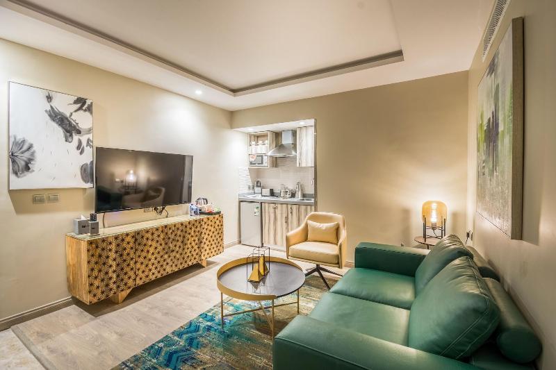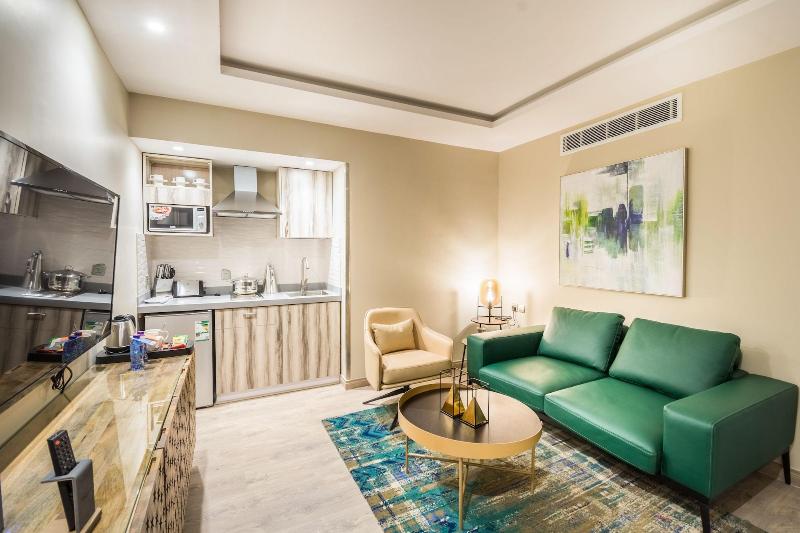 Al alojarte en Ewaa Express Hotel - Gaber en Riad, estarás a 8 minutos en coche del King Fahd Stadium. Este hotel ideal para familias se encuentra a 14, 6 km de Al Nakheel Mall y a 17, 1 km del Sahara Mall. Este hotel libre de humo ofrece servicio de botones, club infantil gratuito y bicicletas gratuitas en las instalaciones. Entre las actividades recreativas se incluye un área de juegos. Tendrás a tu disposición un centro de negocios abierto las 24 horas, check-in exprés y check-out exprés. Hay un aparcamiento sin asistencia gratuito disponible. Sacia tu apetito en la cafetería del hotel o aprovecha el servicio de habitaciones las 24 horas. Se sirve un desayuno bufé gratuito todos los días de 7:30 a 9:00. Siéntete como en casa en una de las 30 habitaciones con aire acondicionado y televisión de pantalla plana. La conexión a Internet wifi gratis te mantendrá conectado y la programación por satélite te proporcionará entretenimiento. El baño ofrece una combinación de ducha y bañera, artículos de tocador gratuitos y bidés. Entre las comodidades, se incluyen caja fuerte, hervidor eléctrico y teléfono con llamadas de larga distancia gratuitas.