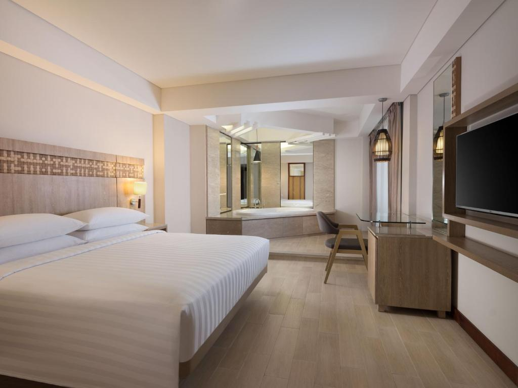 El Fairfield by Marriott Bali Legian se encuentra en Legian y ofrece una piscina al aire libre, centro de fitness y un jardín. Este hotel de 4 estrellas cuenta con terraza y habitaciones con aire acondicionado y WiFi gratuita, todas con baño privado. El restaurante del hotel sirve pizza y platos italianos e internacionales. Todos los alojamientos del hotel incluyen zona de estar, TV de pantalla plana y hervidor de agua. Algunas habitaciones tienen balcón y otras gozan de vistas a la piscina. Las habitaciones están equipadas con nevera. Se sirve un desayuno buffet diario en el establecimiento. El Fairfield by Marriott Bali Legian cuenta con un centro de negocios. El personal de la recepción 24 horas habla inglés e indonesio. El mercado de arte de Legian está a 1 km del Fairfield by Marriott Bali Legian y el aeropuerto internacional de Denpasar Ngurah Rai, el más cercano, a 5 km.