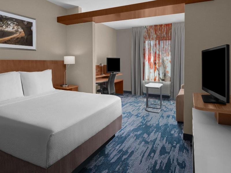 Disfruta de las comodidades recreativas en el Fairfield Inn & Suites Tustin Orange County, que incluyen una piscina al aire libre, jacuzzi y gimnasio abierto las 24 horas. Comienza tus días de semana con un desayuno buffet gratuito (de 6:00 a 9:00 h) y compra refrigerios en la tienda de comestibles/abarrotes del hotel. El hotel ofrece internet alámbrico e inalámbrico gratuito, servicios de conserjería y una chimenea en el vestíbulo. Los viajeros de negocios apreciarán el centro de negocios abierto las 24 horas y el check-out exprés. Las 145 habitaciones cuentan con refrigeradores, microondas, televisores de pantalla plana con cable y baños privados con artículos de tocador y secadores de pelo gratuitos. Los escritorios y las salas de estar independientes ofrecen un amplio espacio para trabajar o relajarse. El estacionamiento está disponible (con cargo). Las atracciones cercanas incluyen el Santa Ana Zoo (a 2, 7 km), el Ronald Reagan Federal Building and Courthouse (a 6 km) y South Coast Plaza (a 7, 6 km). El Aeropuerto John Wayne (SNA) está a 7, 4 km de distancia.