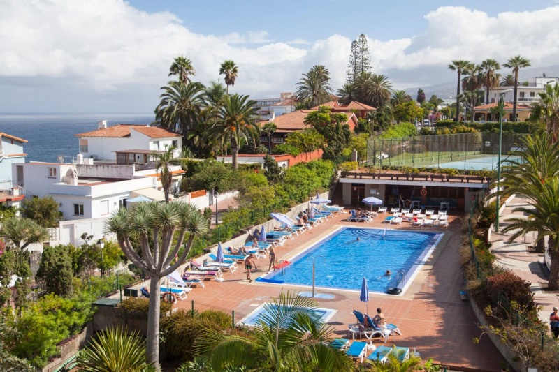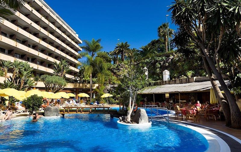 El Hotel Puerto de la Cruz esta situado en la zona residencial de La Paz del Puerto de la Cruz, con fantasticas vistas al mar y al Teide. Ha sido recientemente reformado y esta rodeado de un esplendido jardin subtropical con una amplia variedad de plantas autoctonas. Se encuentra a 10 minutos del centro de la ciudad y del complejo de piscinas Lago Martianez, obra del artista lanzaroteno Cesar Manrique.La capital Santa Cruz se encuentra a 35 km y los aeropuertos Tenerife Sur Reina Sofia y Tenerife Norte Los Rodeos a 96 km y 25 km respectivamente.Doble standard:Tranquilas habitaciones de 25,5 m2, banos recien reformados, luminosas y confortables, con magnificas al Teide y a la piscina-jardin. Todos los habitaciones tienen aire acondicionado,El aire acondicionado tiene horario limitado de 15.30 a 23.30 solo en Verano de mayo a septiembre. balcon privado ,TV via satelite,Telefono directo,,Wifi (con cargo) y bano completo.Facilidades:Wifi gratisRincon de internet (con cargo)Facilidades para personas con movilidad reducidaParking con plazas limitadasBus Gratuito al CC Martianez ( Lunes ? Viernes )Hay 2 piscinas de agua dulce, una de ellas climatizable, rodeadas de terrazas y jardines , parasoles y tumbonas (sin cargo), toallas de piscina (previo deposito, zona de juego y piscina infantil.Servicio de Masaje (previa cita y con cargo)- Pista de tenis ,tenis de mesa, dardos, sala de TV y juegos Shows varias veces a la semana (folclore, flamenco, magia, ...) en Bar Salon Falua.Dos veces por semana hay cenas tematicas con platos locales y orientales (abierto de 07:30 a 10:30, de 13:00 a 15:00 y de 18:30 a 22:00 horas).Bar Piscina. Junto a la piscina principal, con servicio de snacks (abierto de 10:30 a 17:00 horas).Bar Salon Falua .Con musica para baile todas las noches (abierto de 17:00 a 24:00 horas).CODIGO DE VESTIMENTA: Para la cena se ruega vestimenta adecuada (no pantalon corto ni camiseta).Hay facilidades que pueden tener un cargo local.Desde 21.08.18 el hotel ha comenzado a cobrar las plazas del parking. El aparcamiento tendra un coste de 5euros por dia y las plazas son limitadas y segun disponibilidad. The hotel ha cambiado la politica de uso de estacionamiento. Antes: Gratis; ahora: ? 5 por dia con la adicion de un deposito de ? 20 por la posesion y devolucion de la tarjeta de acceso de estacionamiento. Los lugares son limitados y de acuerdo a la disponibilidad.