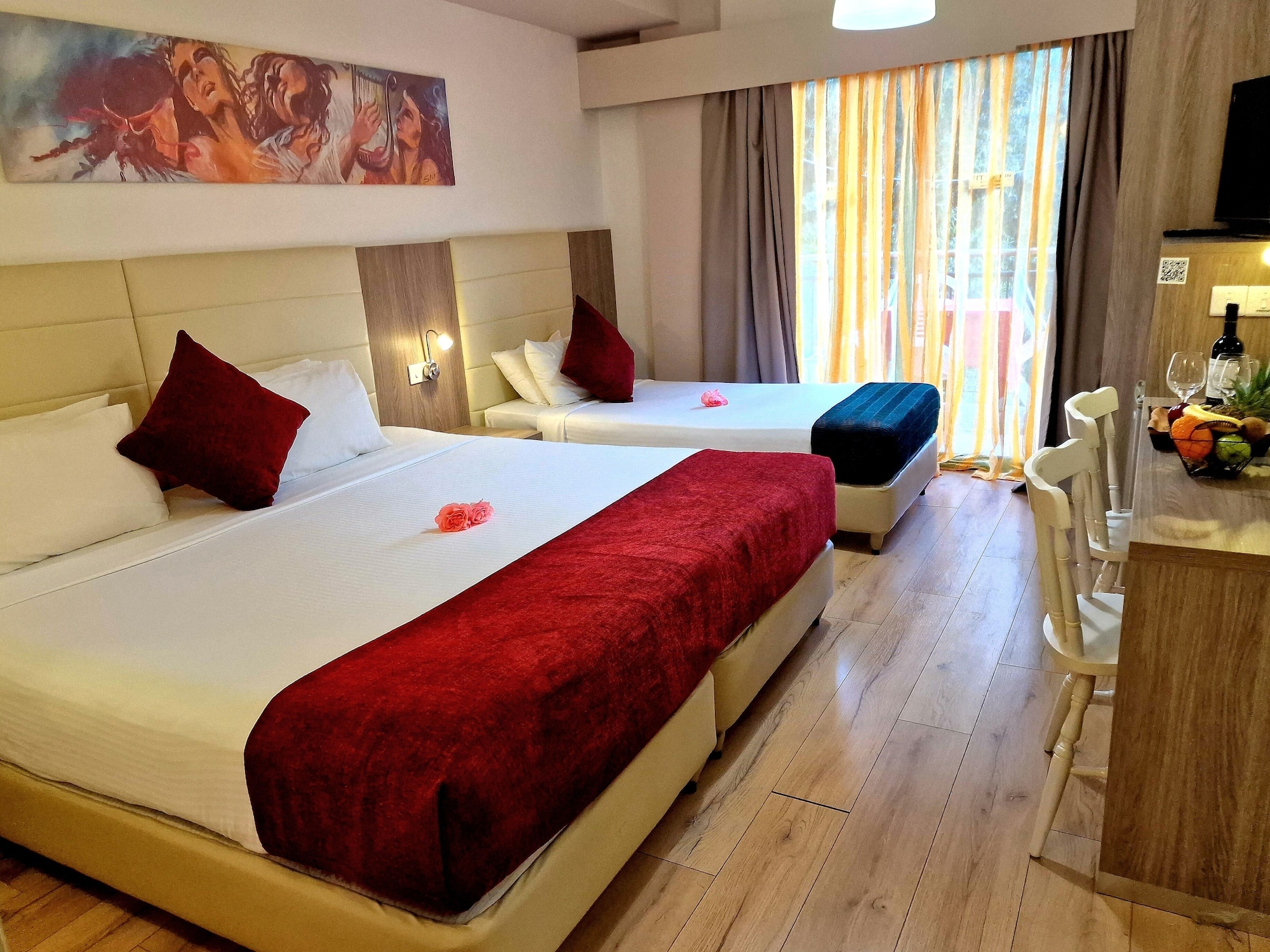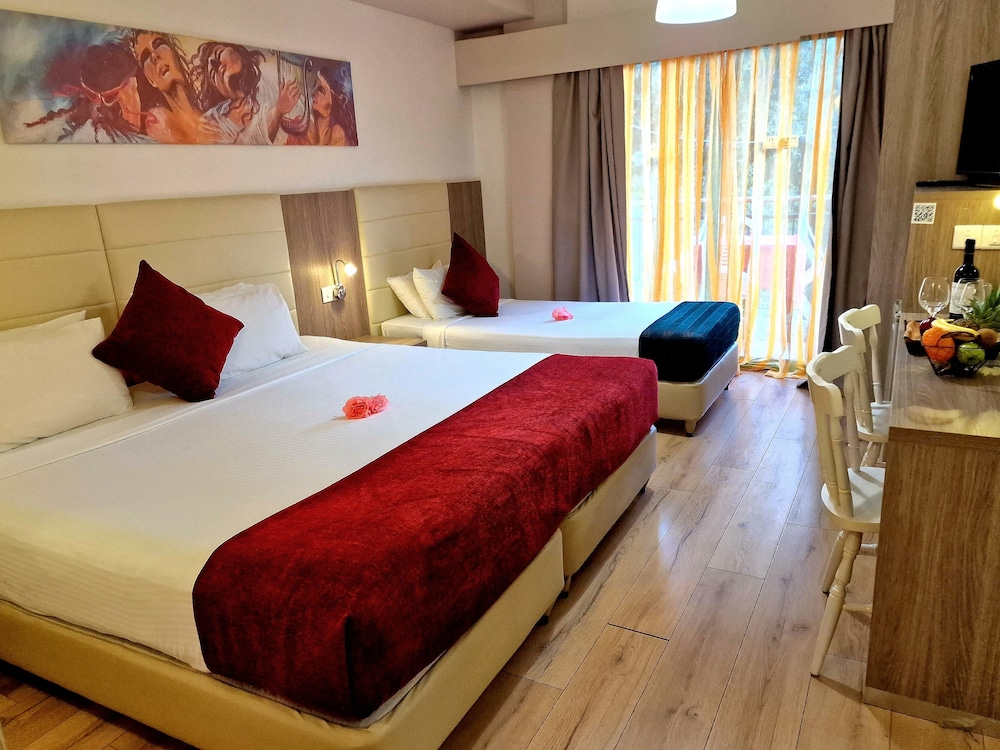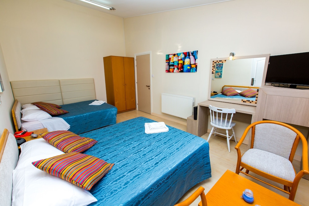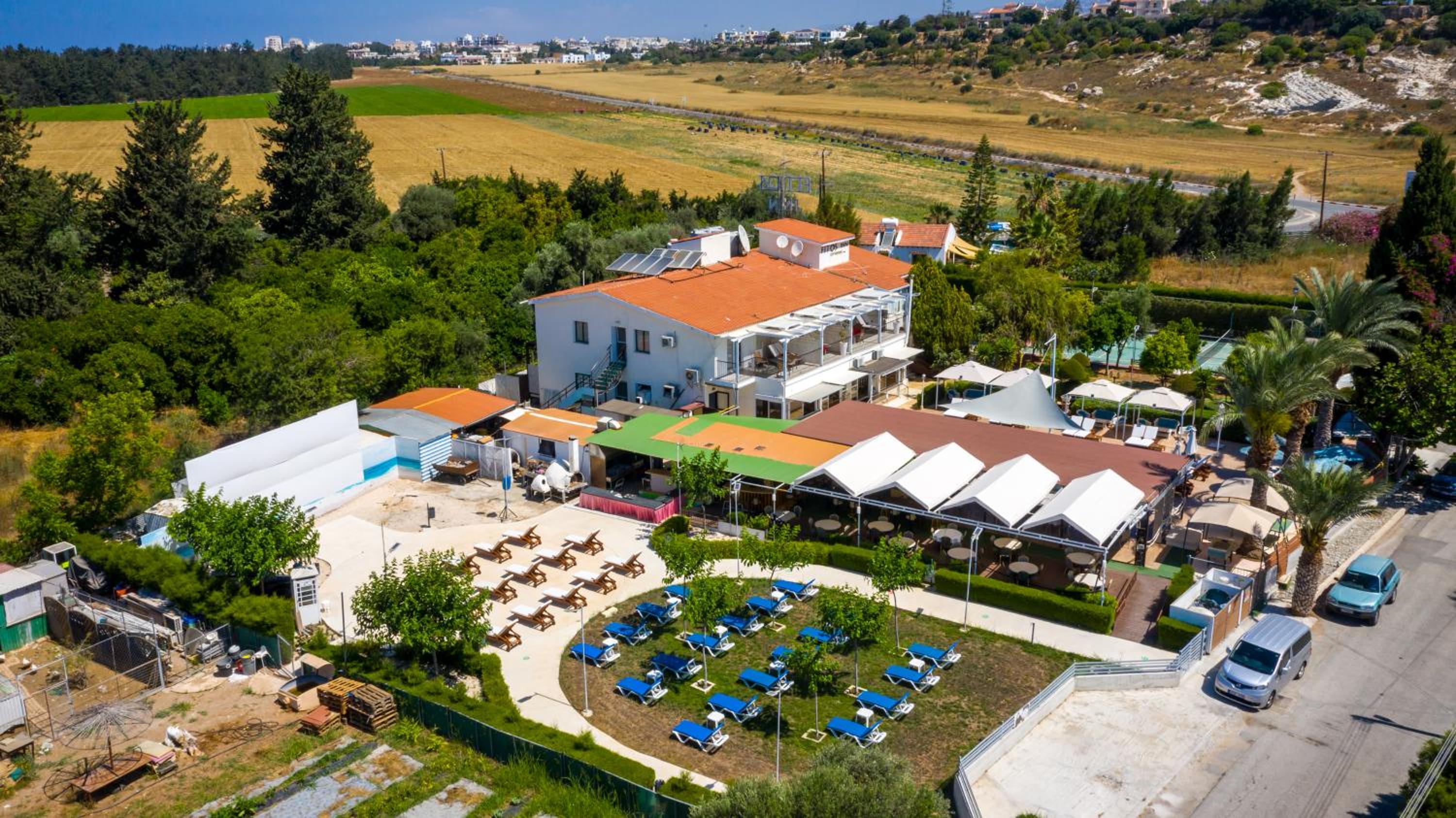 Fitos Inn Guest House te permite disfrutar de una ubicación estupenda en Pafos, cerca de la playa y a poca distancia de Parque Acuático Afrodita y Puerto de Paphos. Este aparthotel se encuentra cerca de Museo de Arqueología de Pafos y de Iglesia de Agioi Anargyroi.Habitaciones Te sentirás como en tu propia casa en una de las 18 habitaciones con frigorífico y televisor de plasma. Las habitaciones disponen de balcón amueblado. La conexión a Internet wifi gratis te mantendrá en contacto con los tuyos; también podrás ver tu programa favorito en el televisor con canales digitales. El baño privado con bañera o ducha está provisto de artículos de higiene personal gratuitos y secador de pelo. No te pierdas las instalaciones recreativas a tu disposición, que incluyen piscina al aire libre y una pista de tenis exterior. Encontrarás también conexión a Internet wifi gratis, vestíbulo con chimenea y asistencia turística y para la compra de entradas.Para comer Siéntate a comer algo en el restaurante de este aparthotel, que ofrece vistas al jardín o aprovecha el servicio de habitaciones con horario limitado. Disfruta de tu bebida favorita en el bar o lounge o en el bar junto a la piscina. Todos los días se sirve un desayuno bufé de pago.Servicios de negocios y otros Tendrás una zona de ordenadores, depósito de equipaje y lavandería a tu disposición. Se ofrece servicio de transporte al aeropuerto (ida y vuelta) gratuito (a petición).