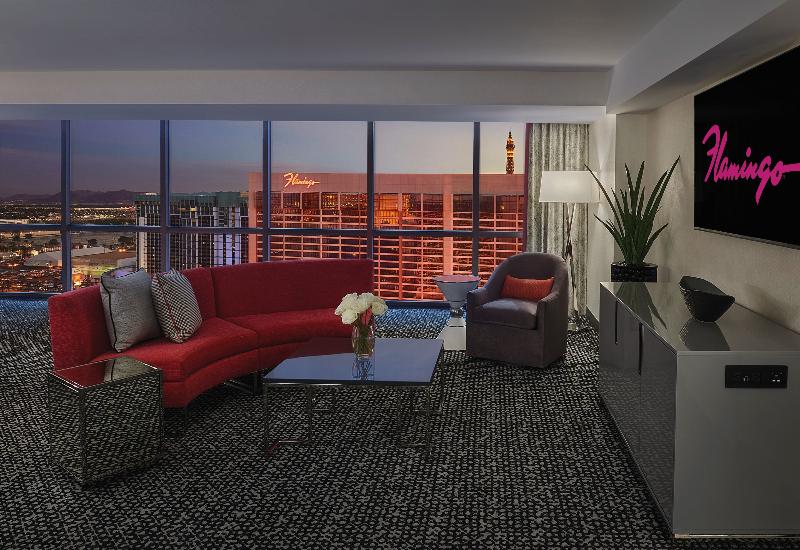 Alójate en el Flamingo Las Vegas Hotel & Casino en el Strip de Las Vegas, a pocos pasos del LINQ Promenade y a 3 minutos a pie de las Forum Shops at Caesars. Este complejo con casino se encuentra a 0, 3 km del Colosseum at Caesars Palace y a 0, 8 km de la Torre Eiffel de Las Vegas. Relájate en el spa de servicio completo con masajes y tratamientos faciales. Disfruta de servicios como gimnasio, sauna y casino. El complejo también ofrece wifi gratis, servicios de conserjería y tiendas de regalos. Elige entre 3500 habitaciones con televisores de pantalla plana y camas con pillow-top. También incluyen wifi gratis y baños privados con duchas, artículos de tocador gratuitos y secadores de pelo. Cena en uno de los dos restaurantes del complejo, incluido el Margaritaville, o disfruta del servicio de habitaciones (con horario limitado). Hay aperitivos disponibles en las dos cafeterías. Relájate en uno de los cinco bares o dos bares junto a la piscina. El complejo cuenta con centro de negocios, servicio de limusina/coche con chófer, check-in exprés, espacio para conferencias y salas de reuniones. Hay aparcamiento disponible (de pago). La nueva GO Pool, un complejo de varias piscinas con un bar acuático de 30 asientos, abre el 15 de mayo de 2025 (si el tiempo lo permite). El horario de la piscina y las fechas de apertura están sujetos a cambios.