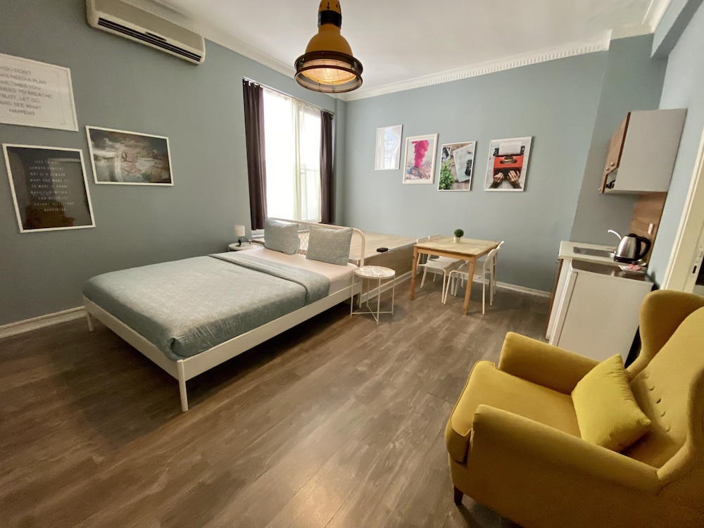 Si te alojas en Flats Company - Karakoy Apartment, en Estambul (Beyoglu), estarás a pocos minutos de Nardis Jazz Club y Torre de Gálata. Este hotel está cerca de la mezquita de Süleymaniye y del Gran Bazar.Alojamiento Siéntase como en casa en una de las 18 habitaciones con aire acondicionado y cocina básica con refrigerador y placa de cocina. Los televisores de pantalla plana con programación satelital brindan entretenimiento, mientras que el acceso inalámbrico a Internet de cortesía lo mantiene conectado. Las comodidades incluyen escritorio y cafetera y tetera, además de un servicio de limpieza disponible todos los días.Comodidades Aproveche las convenientes comodidades, que incluyen acceso inalámbrico a Internet de cortesía y servicios de conserjería.Negocios, Otros Servicios Los servicios destacados incluyen servicio de tintorería o lavandería, depósito de equipaje y lavandería.