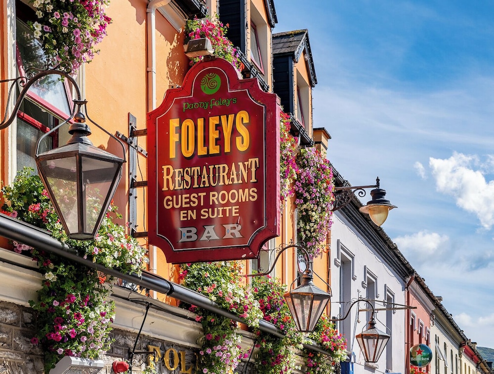 Ubicación:Foley goza de una ubicación ideal entre las coloridas casas de Henry Street, en el corazón de la ciudad de Kenmare centro, Co Kerry ya sólo un paseo de cinco minutos para mirar en la pintoresca bahía de Kenmare, situado tanto en el anillo de Kerry y el anillo de Beara.Habitaciones:Las habitaciones son modernas, cálidas y cómodas. Disponen de habitaciones dobles con cama doble o camas separadas, camas individuales, habitaciones triples y habitaciones familiares. Todas las habitaciones tiene baño privado, secador de pelo, tabla de planchar, televisión, teléfono, servicio de té y café en las habitaciones.Facilidades:Nuestro animado bar y el restaurante sirve buena comida con lo mejor de la música tradicional irlandesa en directo. Disponen de parking.*Algunos de los servicios mencionados anteriormente pueden tener un cargo extra a pagar directamente en el hotel.