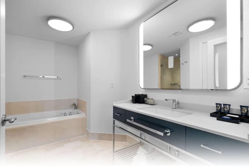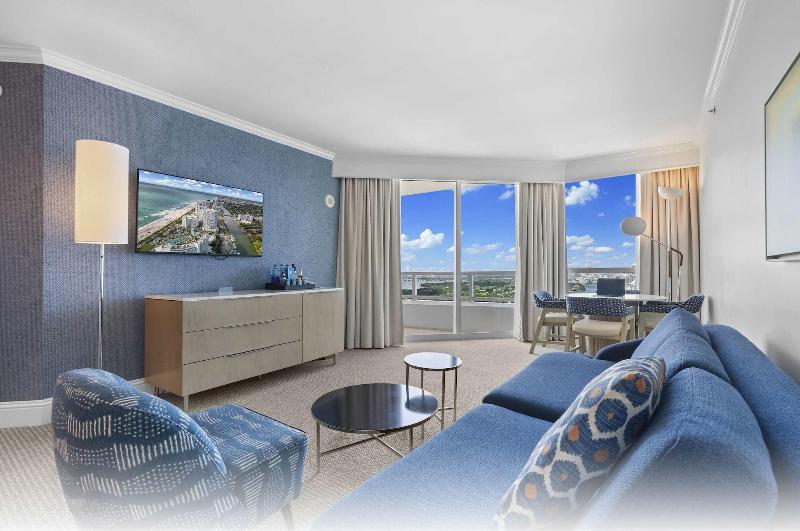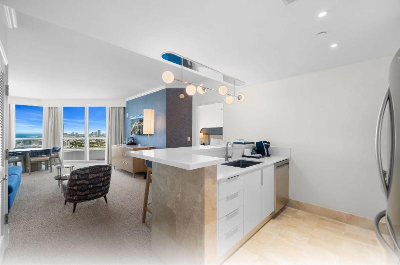 Consiéntete con una visita al spa, que ofrece masajes, tratamientos corporales y faciales. Seguro que apreciarás las instalaciones recreativas, que incluyen 11 piscinas al aire libre, un tobogán acuático y un gimnasio abierto las 24 horas. Disfruta de una comida en uno de los 12 restaurantes del apartotel o quédate en tu habitación y aprovecha el servicio a la habitación (con horario limitado). Refréscate con tu bebida favorita en el bar junto a la piscina. Los servicios destacados incluyen un centro de negocios abierto las 24 horas, recepción 24 horas y ascensor. Siéntete como en casa en una de las 2 habitaciones decoradas individualmente. Tu cama cuenta con edredones de plumas y sábanas de algodón egipcio. El acceso inalámbrico a internet gratuito te mantiene conectado y la programación por cable está disponible para tu entretenimiento. Los baños con bañeras y duchas separadas cuentan con bañeras de hidromasaje y artículos de tocador de diseñador. Las distancias se muestran con una precisión de 0, 1 millas y kilómetros. Fontainebleau: 0, 2 km / 0, 1 mi - Calle 41: 0, 8 km / 0, 5 mi