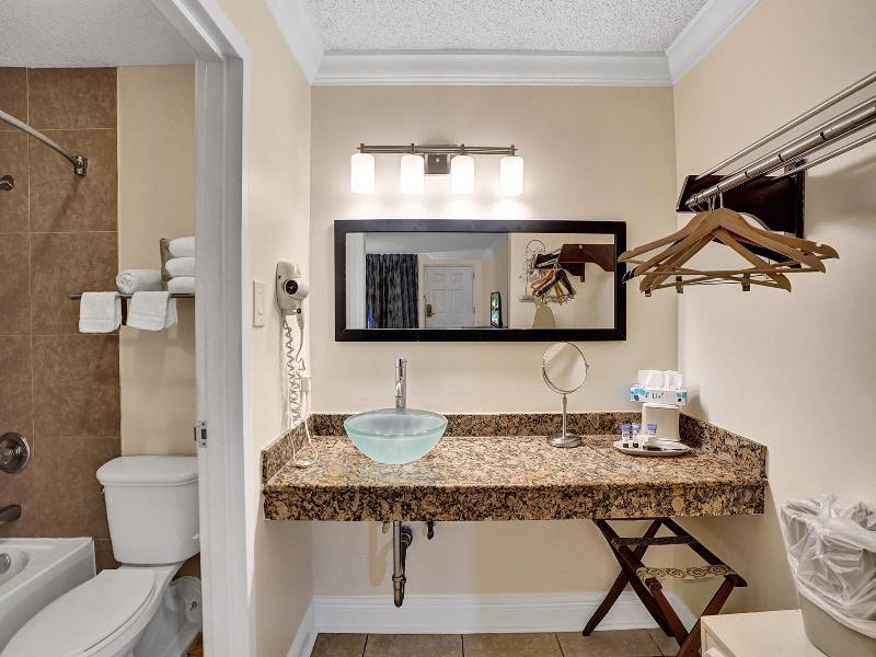 El hotel está perfectamente ubicado para quienes desean disfrutar de las atracciones de la ciudad. Los Olas Boulevard, con sus boutiques de moda, galerías de arte y opciones para cenar al aire libre, se encuentra a 15 minutos en coche. También está a poca distancia en coche de la terminal de cruceros de Fort Lauderdale, Port Everglades, y del Aeropuerto Internacional de Fort Lauderdale-Hollywood. El hotel ofrece habitaciones amplias, un servicio excepcional y comodidades de lujo, todo a un precio asequible. Todas las cómodas habitaciones cuentan con televisores de pantalla plana grandes con cable y HBO, microondas, refrigeradores e internet de alta velocidad gratuito. Para mayor comodidad, los huéspedes encontrarán un gimnasio bien equipado con aparatos de ejercicio y una vibrante piscina al aire libre, rodeada de jardines tropicales.