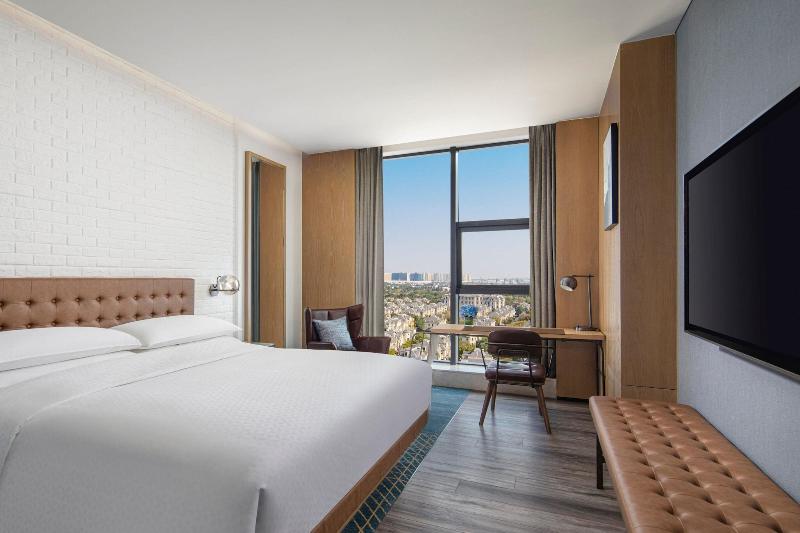 Ubicado en el distrito Qingpu de Shanghái, el Four Points by Sheraton Shanghai Hongqiao se encuentra a 10 minutos en coche del National Exhibition and Convention Center y de Hongqiao Tiandi. Este hotel de lujo ofrece un spa con servicio completo de masajes, wifi gratuito, servicio de conserjería e incluso servicios para bodas. Cada una de las 193 habitaciones con aire acondicionado dispone de minibar, TV de pantalla plana con canales por satélite y baño privado con artículos de aseo gratuitos y secador de pelo. Los huéspedes pueden disfrutar de cocina irlandesa en The Mesh Cafe para el almuerzo y la cena o pedir servicio de habitaciones en horario limitado. También hay un bar/salón disponible. Se ofrece desayuno bufé por un suplemento. Los servicios adicionales incluyen acceso a internet por cable gratuito, servicio de limusina/coche con chófer, registro de salida exprés y un servicio de traslado gratuito al aeropuerto (disponible bajo petición). Para eventos, el hotel cuenta con 170 metros cuadrados de espacio para conferencias y tres salas de reuniones.