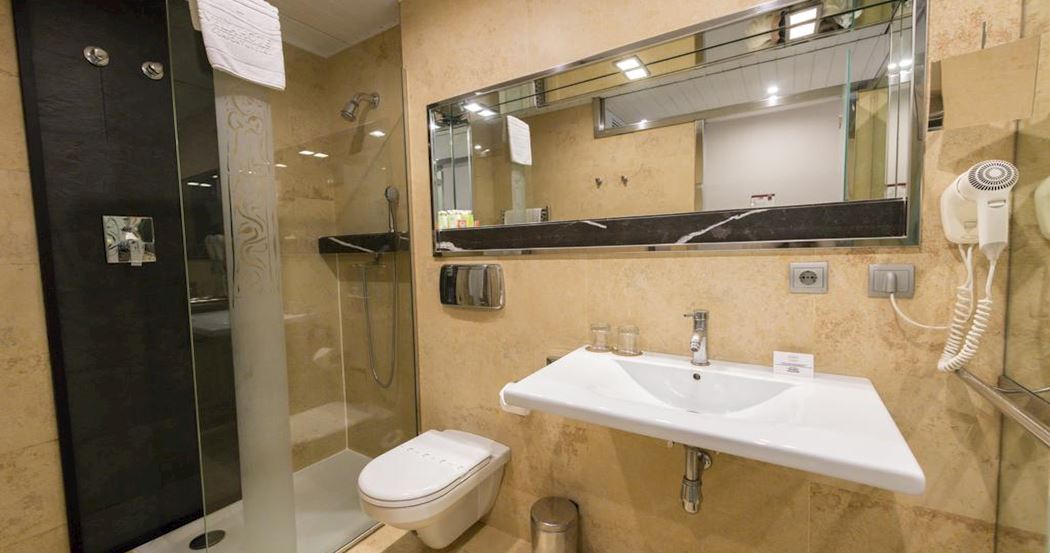 Hotel muy bueno, situación excelente, recepción y desayuno correcto en el hotel de enfrente. Habitación muy bien, salvo la puerta de cristal del baño además del cristal que rodea la pared de arriba...