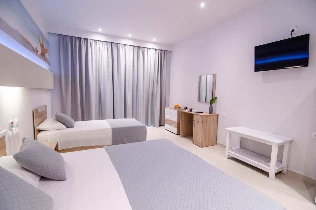 Las instalaciones y servicios incluyen aire acondicionado, WiFi, un bar, un restaurante, caja de seguridad, servicio de limpieza diario, una terraza, un jardín, un balcón y un área de aparcamiento.Las habitaciones disponen de aire acondicionado, TV, teléfono, Wi-Fi, escritorio, toallas, artículos de tocador y baño privado.Dirección: Faliraki, Apolloniou Rodiou 4 Street, 85105 Isla de Rodas, Grecia.