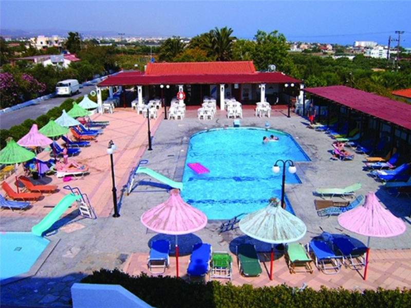 El hotel Galini Anissaras es un complejo familiar compuesto de un edificio principal y pequeñas residencias estilo bungalows. Está ubicado en un entorno natural y ambiente cretense, cerca de una amplia selección de bares, tabernas, restaurantes y tiendas locales (a 300 m.), a 3 km. de Hersonissos con su animado ambiente nocturno y cerca de la parada de autobús local. El aeropuerto de Heraklion se encuentra a 20 km. del hotel.Las instalaciones y servicios del hotel incluyen recepción con cajas de seguridad en alquiler, salón de TV/video, punto de internet (con cargo adicional), restaurante estilo buffet y una zona de piscina con piscina exterior, piscina infantil, bar de snack de piscina y una terraza solárium con tumbonas y sombrillas. Además ofrece ping-pong, dardos, sala de juegos y parque infantil.Las habitaciones están equipadas con A/C (con cargo adicional), teléfono, frigorífico (con cargo adicional), música, balcón o terraza y baño con ducha.**El aire acondicionado funciona desde junio a septiembre con cargo adicional.**En caso de elegir la opción de Todo Incluido:**El concepto de "todo incluido" comprende todas las comidas (desayuno, comida, cena y snacks) y las bebidas en las comidas así como refrescos, cerveza, vino, aguas y bebidas alcohólicas, todas las de marca local.Las bebidas serán servidas desde la mañana hasta la media noche (hasta aproximadamente 22:00 hrs - 24:00 hrs.)Los horarios de apertura varían entre los diferentes hoteles.En determinados hoteles el programa de actividades está también incluido.**Dirección: 70014 Anissaras, Hersonissos, Crete, Greece.