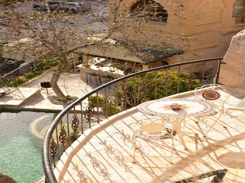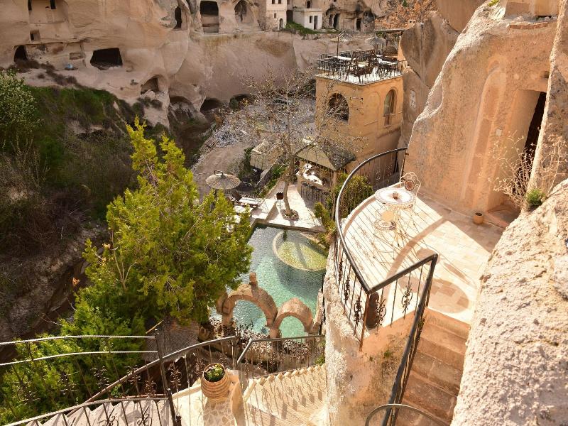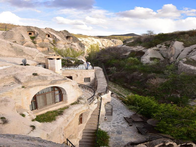 Este espectacular hotel goza de una ubicación única en la aldea de Ayvali, cerca de Urgup, en el corazón de Capadocia, Turquía. El hotel está sorprendentemente enclavado en la ladera, excavado en la roca y construido con piedra volcánica local. Te encontrarás a poca distancia en coche de un sinfín de atracciones cautivadoras, como el Museo al Aire Libre de Goreme, el Castillo de Uchisar y la Ciudad Subterránea de Derinkuyu. Este intrigante hotel histórico ocupa un antiguo retiro monástico bizantino de mil años de antigüedad. El hotel cuenta con hermosas y acogedoras habitaciones excavadas en las cuevas o diseñadas con piedra volcánica. La decoración incluye alfombras turcas y evoca la esencia de una época pasada. Las habitaciones están bien equipadas con comodidades modernas para tu comodidad. Quedarás impresionado por las ejemplares instalaciones y servicios que ofrece el hotel.
