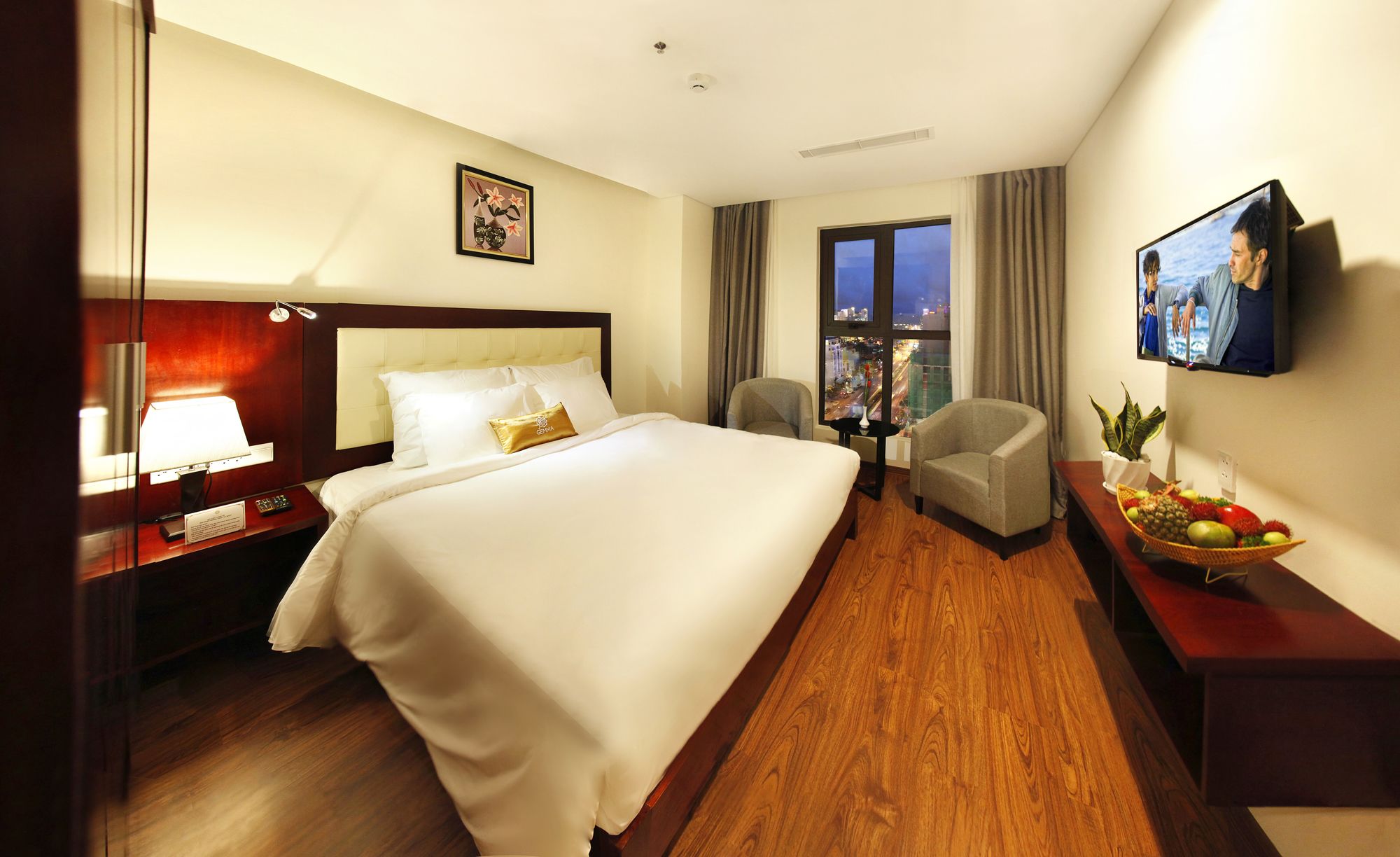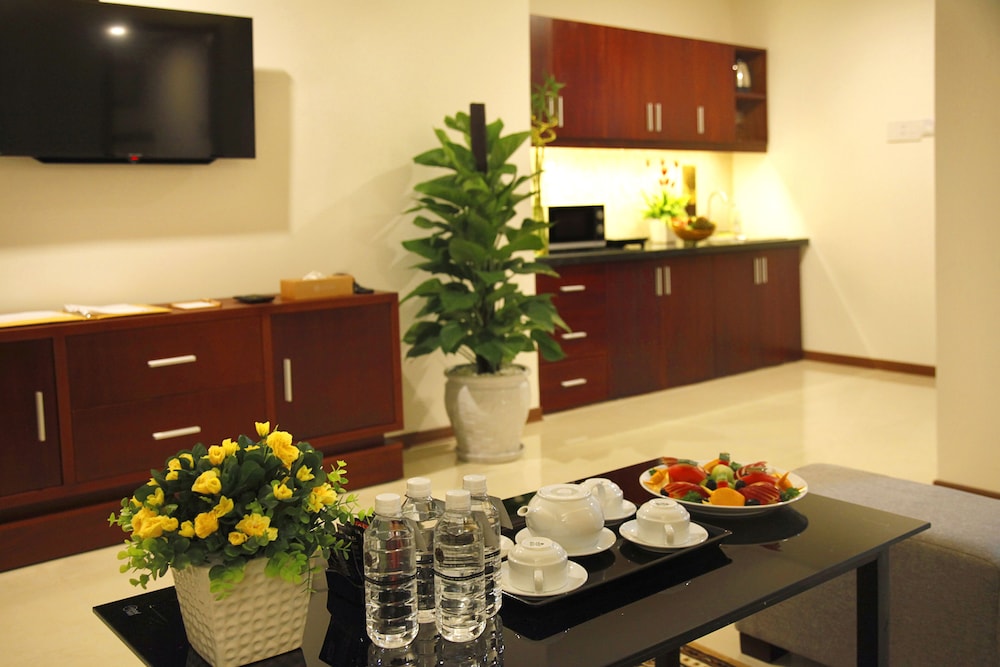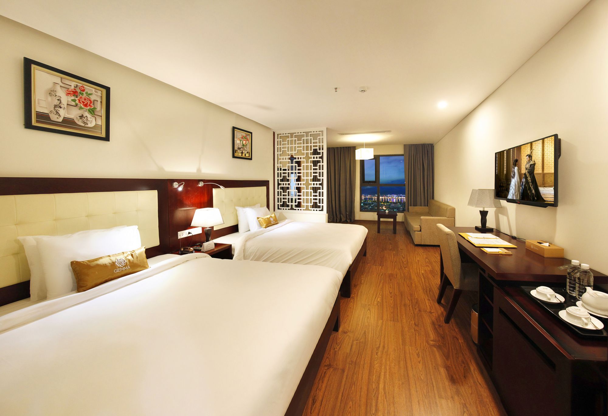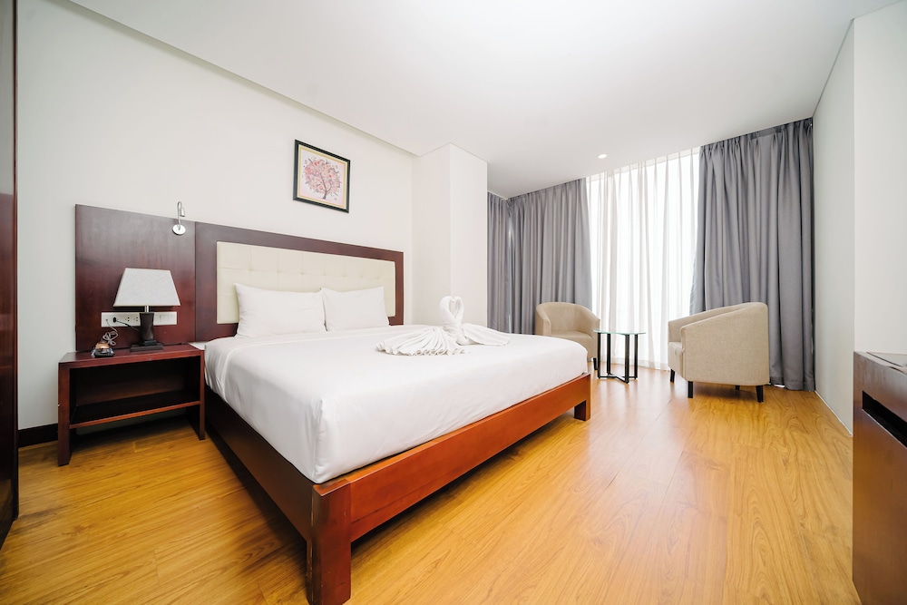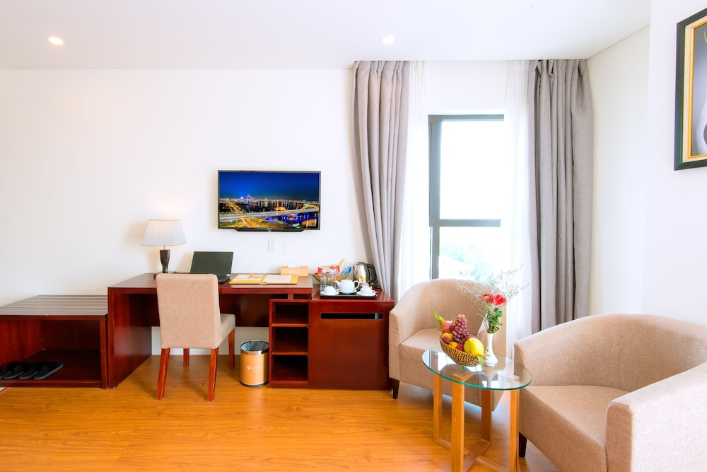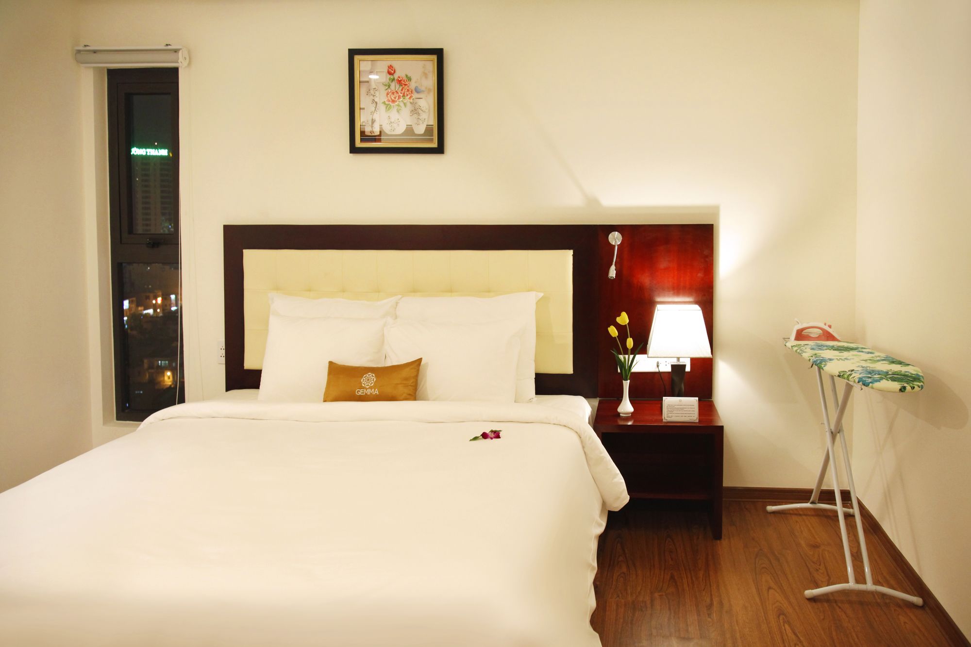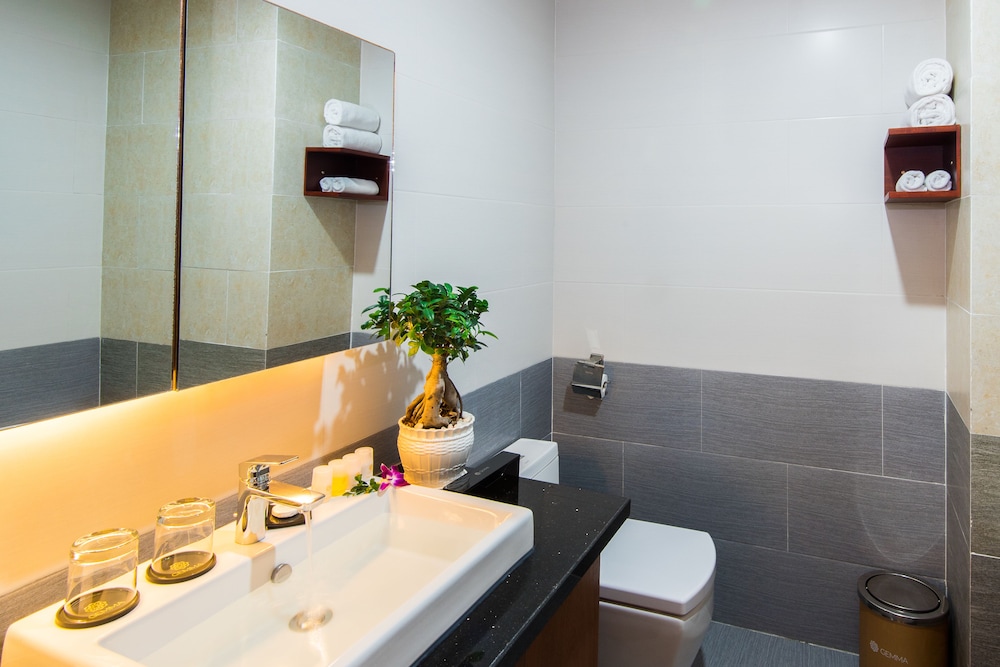 Si te alojas en Gemma Hotel, en Da Nang (Centro de la ciudad de Đà Nẵng), podrás llegar fácilmente a Puente del Dragón y a Museo de Escultura Cham. Este hotel se encuentra cerca de Centro comercial Vincom y de Catedral de Da Nang. Te sentirás como en tu propia casa en una de las 81 habitaciones con aire acondicionado, minibar y televisor de pantalla plana. La conexión a Internet wifi gratis te mantendrá en contacto con los tuyos; también podrás ver tu programa favorito en el televisor con canales por cable. El baño privado con bañera o ducha está provisto de artículos de higiene personal gratuitos y secador de pelo. Las comodidades incluyen caja fuerte, escritorio y teléfono. Con servicios como masajes, tratamientos corporales o tratamientos faciales, te sentirás como nuevo. La diversión está asegurada en este establecimiento, que ofrece piscina al aire libre, baño turco y gimnasio. Se ofrece además conexión a Internet wifi gratis, televisor en zonas comunes y asistencia turística y para la compra de entradas. Podrás comer en el restaurante de este hotel, que cuenta con un bar, o aprovechar el servicio de habitaciones con horario limitado. Relájate con un buen refresco en el 2 bares con salón. Tendrás centro de negocios, periódicos gratuitos en el vestíbulo y servicio de tintorería a tu disposición. Pagando un pequeño suplemento podrás aprovechar prestaciones como servicio de transporte al aeropuerto (ida y vuelta) (disponible las 24 horas) y aparcamiento sin asistencia gratuito.