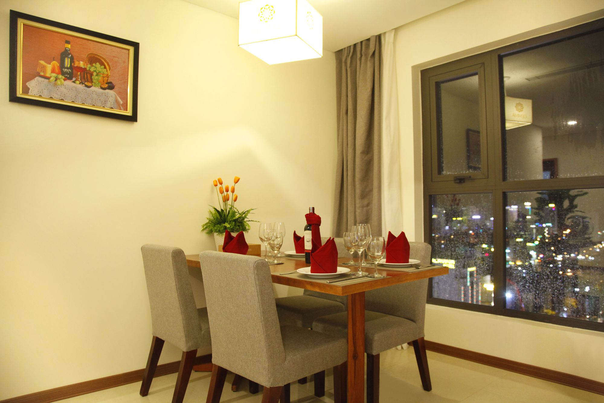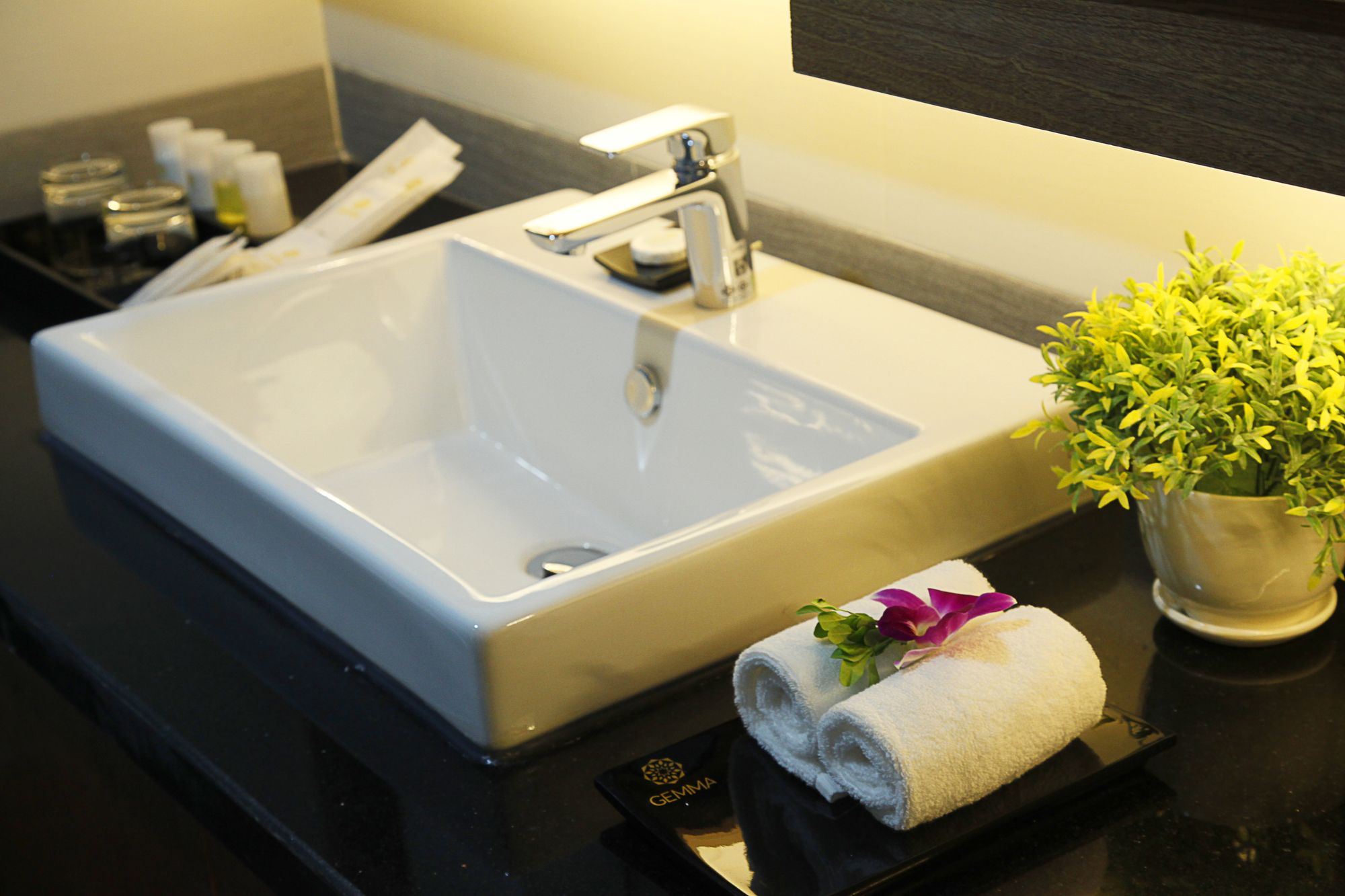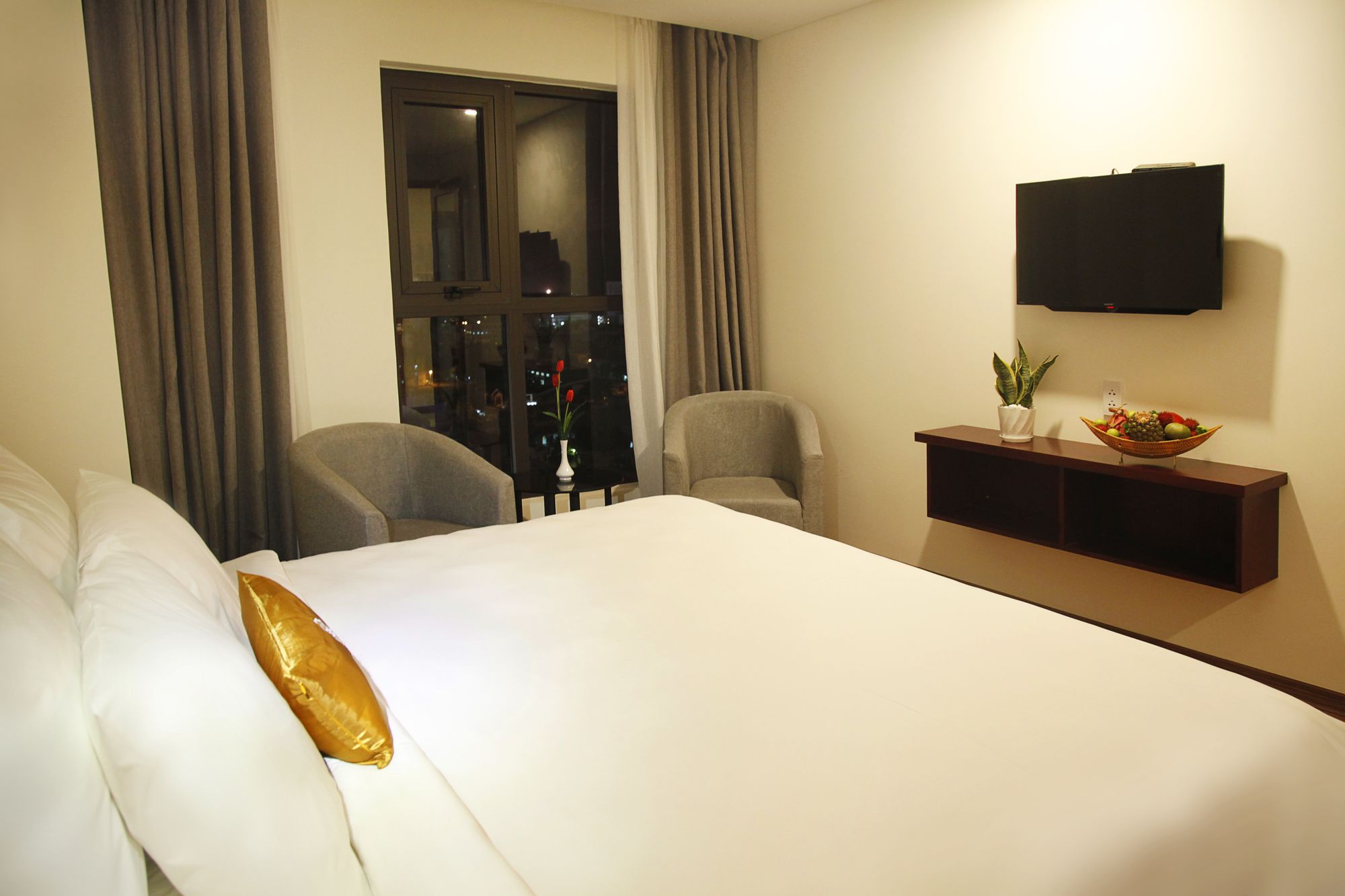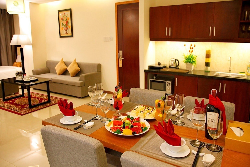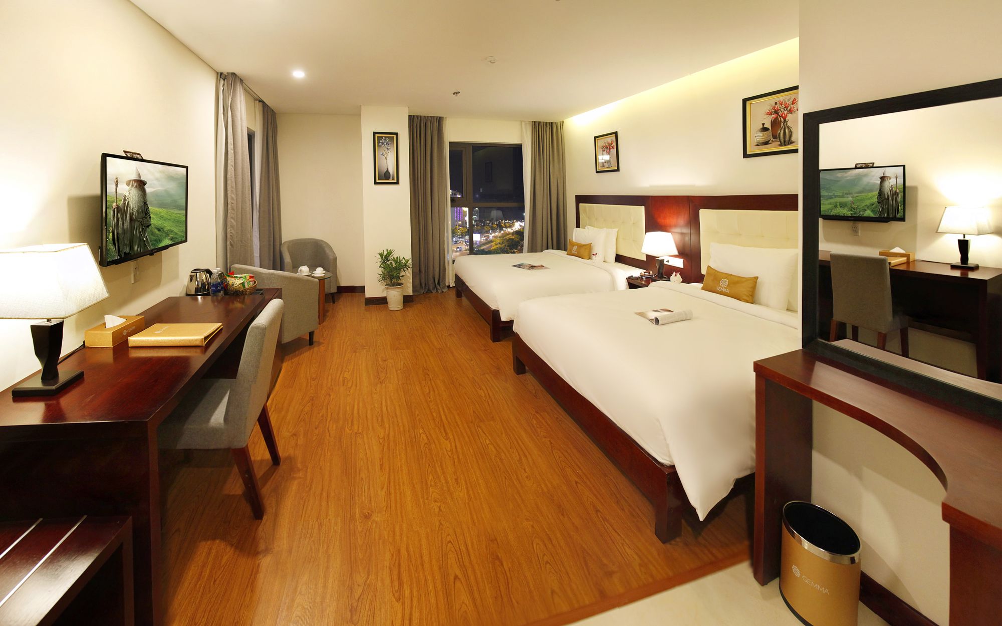 Si te alojas en Gemma Hotel, en Da Nang (Centro de la ciudad de Đà Nẵng), podrás llegar fácilmente a Puente del Dragón y a Museo de Escultura Cham. Este hotel se encuentra cerca de Centro comercial Vincom y de Catedral de Da Nang. Te sentirás como en tu propia casa en una de las 81 habitaciones con aire acondicionado, minibar y televisor de pantalla plana. La conexión a Internet wifi gratis te mantendrá en contacto con los tuyos; también podrás ver tu programa favorito en el televisor con canales por cable. El baño privado con bañera o ducha está provisto de artículos de higiene personal gratuitos y secador de pelo. Las comodidades incluyen caja fuerte, escritorio y teléfono. Con servicios como masajes, tratamientos corporales o tratamientos faciales, te sentirás como nuevo. La diversión está asegurada en este establecimiento, que ofrece piscina al aire libre, baño turco y gimnasio. Se ofrece además conexión a Internet wifi gratis, televisor en zonas comunes y asistencia turística y para la compra de entradas. Podrás comer en el restaurante de este hotel, que cuenta con un bar, o aprovechar el servicio de habitaciones con horario limitado. Relájate con un buen refresco en el 2 bares con salón. Tendrás centro de negocios, periódicos gratuitos en el vestíbulo y servicio de tintorería a tu disposición. Pagando un pequeño suplemento podrás aprovechar prestaciones como servicio de transporte al aeropuerto (ida y vuelta) (disponible las 24 horas) y aparcamiento sin asistencia gratuito.