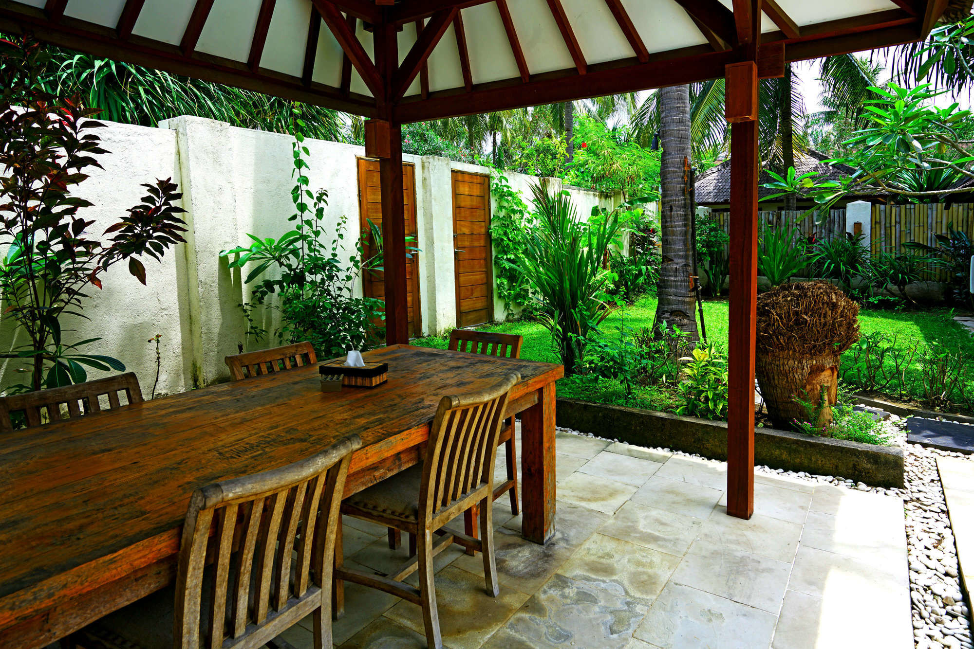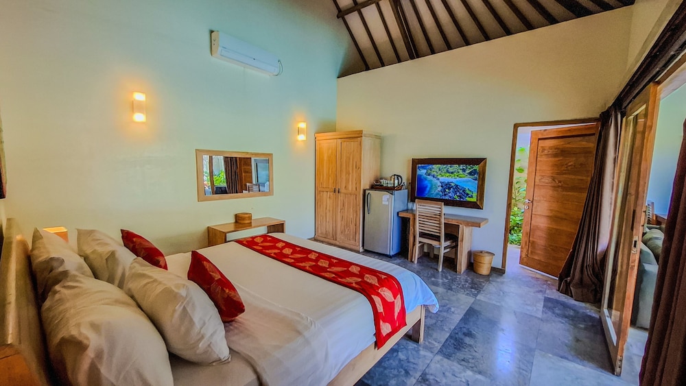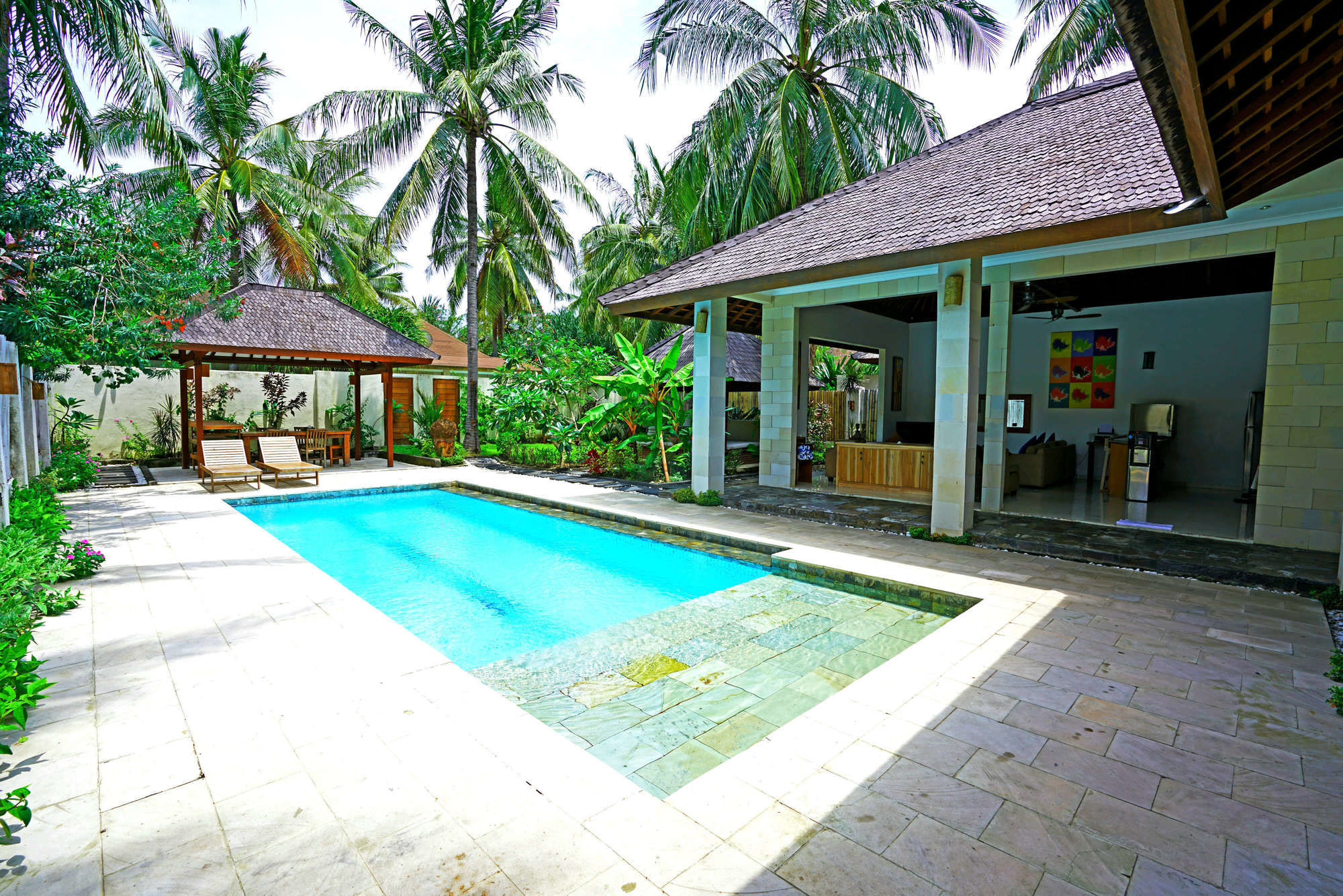 En Gili Trawangan (Gili Islands), Gili Luxury Villa te permite llegar cómodamente a Turtle Hatchery y Mercado Gili Trawangan. Este hostal se encuentra cerca de Mercado nocturno Gili Trawangan y de Puerto Gili Trawangan.Habitaciones Te sentirás como en tu propia casa en una de las 5 habitaciones con aire acondicionado, minibar y televisor de pantalla plana. Las habitaciones disponen de patio con mobiliario. La conexión a Internet wifi gratis te mantendrá en contacto con los tuyos; también podrás ver tu programa favorito en el televisor con canales por cable. El baño privado con ducha está provisto de artículos de higiene personal gratuitos y secador de pelo.Servicios Disfruta de tus momentos de ocio con instalaciones como piscina al aire libre, una pista de tenis exterior y gimnasio. Otros servicios de este hostal incluyen conexión a Internet wifi gratis, servicios de conserjería y servicio de canguro (de pago). El servicio de transporte (de pago) te llevará a varios puntos imprescindibles de la zona.Para comer Aprovecha el servicio de habitaciones las 24 horas de este hostal.Servicios de negocios y otros Tendrás servicio de tintorería, servicio de recepción 24 horas y depósito de equipaje a tu disposición. Se ofrece servicio de transporte al aeropuerto (ida y vuelta) de pago (disponible las 24 horas).