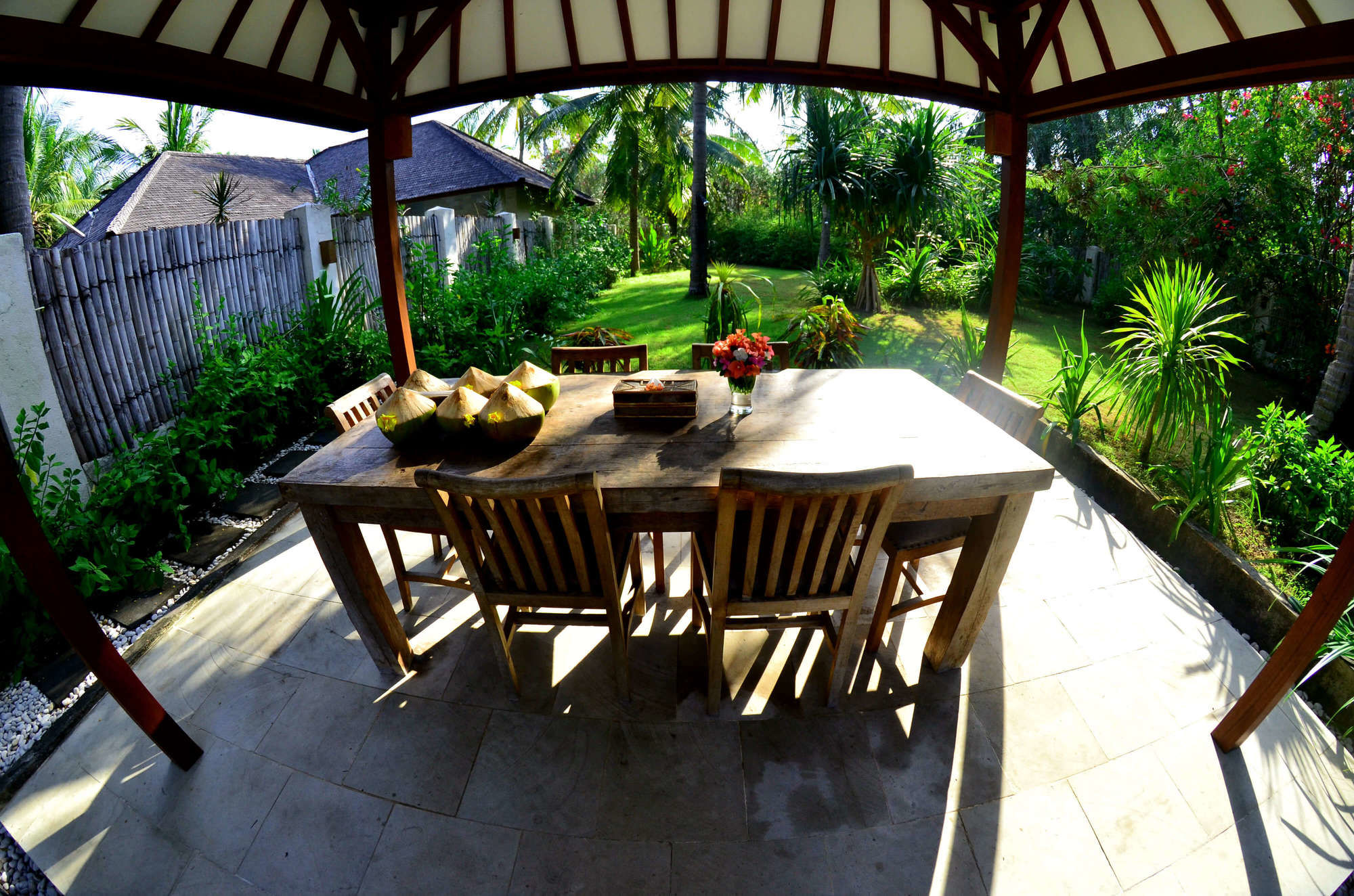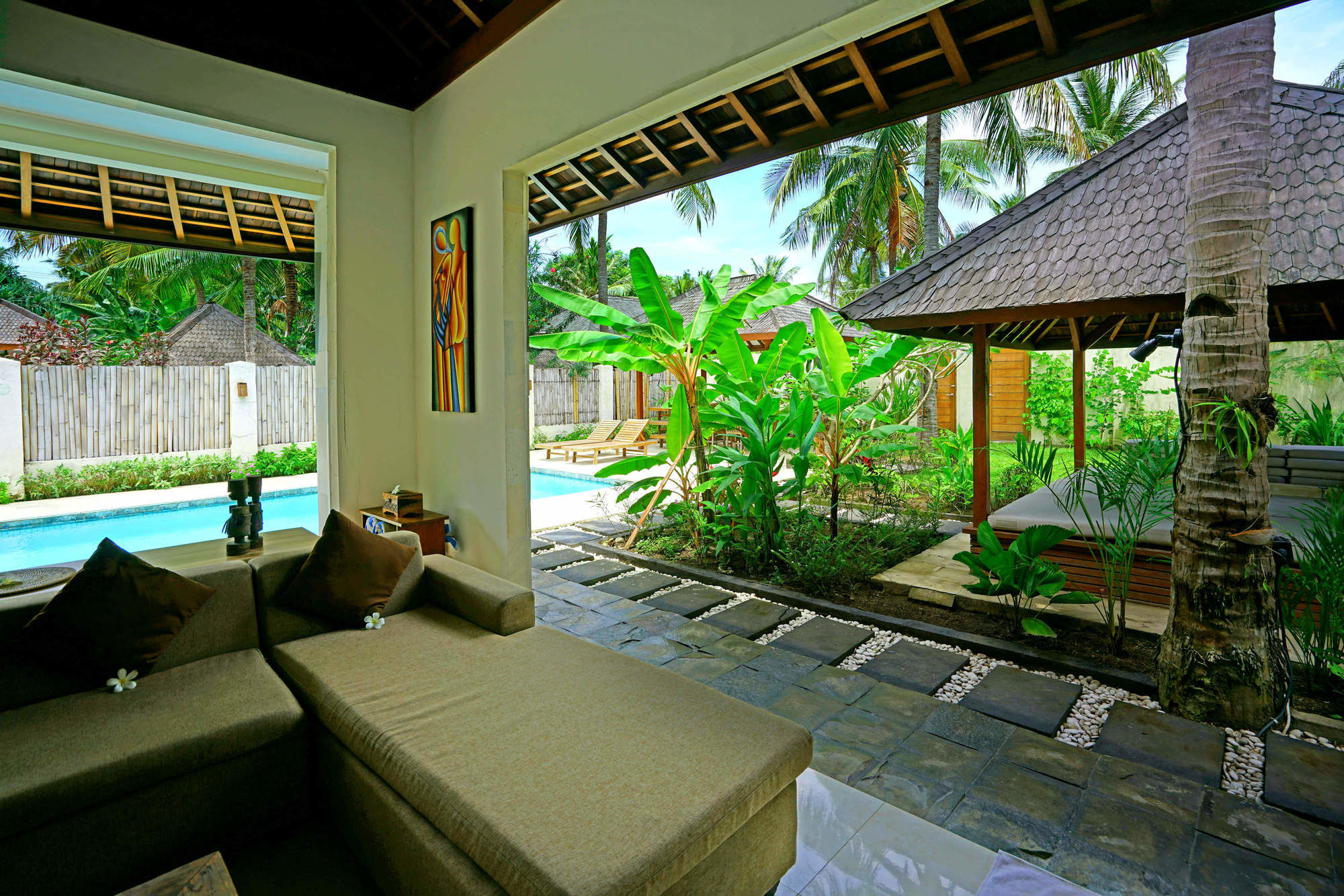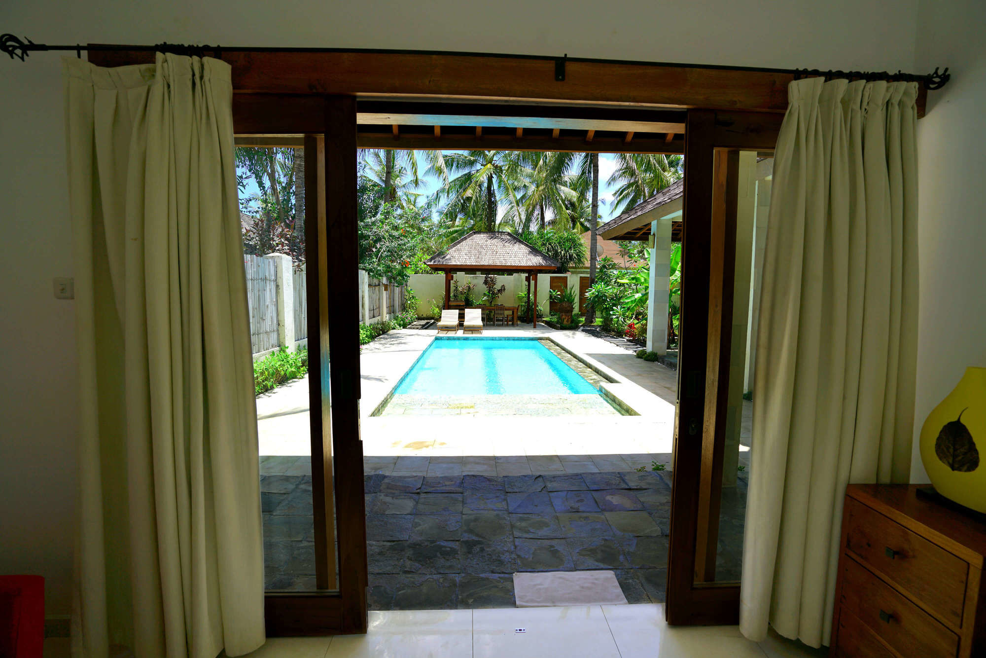 En Gili Trawangan (Gili Islands), Gili Luxury Villa te permite llegar cómodamente a Turtle Hatchery y Mercado Gili Trawangan. Este hostal se encuentra cerca de Mercado nocturno Gili Trawangan y de Puerto Gili Trawangan.Habitaciones Te sentirás como en tu propia casa en una de las 5 habitaciones con aire acondicionado, minibar y televisor de pantalla plana. Las habitaciones disponen de patio con mobiliario. La conexión a Internet wifi gratis te mantendrá en contacto con los tuyos; también podrás ver tu programa favorito en el televisor con canales por cable. El baño privado con ducha está provisto de artículos de higiene personal gratuitos y secador de pelo.Servicios Disfruta de tus momentos de ocio con instalaciones como piscina al aire libre, una pista de tenis exterior y gimnasio. Otros servicios de este hostal incluyen conexión a Internet wifi gratis, servicios de conserjería y servicio de canguro (de pago). El servicio de transporte (de pago) te llevará a varios puntos imprescindibles de la zona.Para comer Aprovecha el servicio de habitaciones las 24 horas de este hostal.Servicios de negocios y otros Tendrás servicio de tintorería, servicio de recepción 24 horas y depósito de equipaje a tu disposición. Se ofrece servicio de transporte al aeropuerto (ida y vuelta) de pago (disponible las 24 horas).
