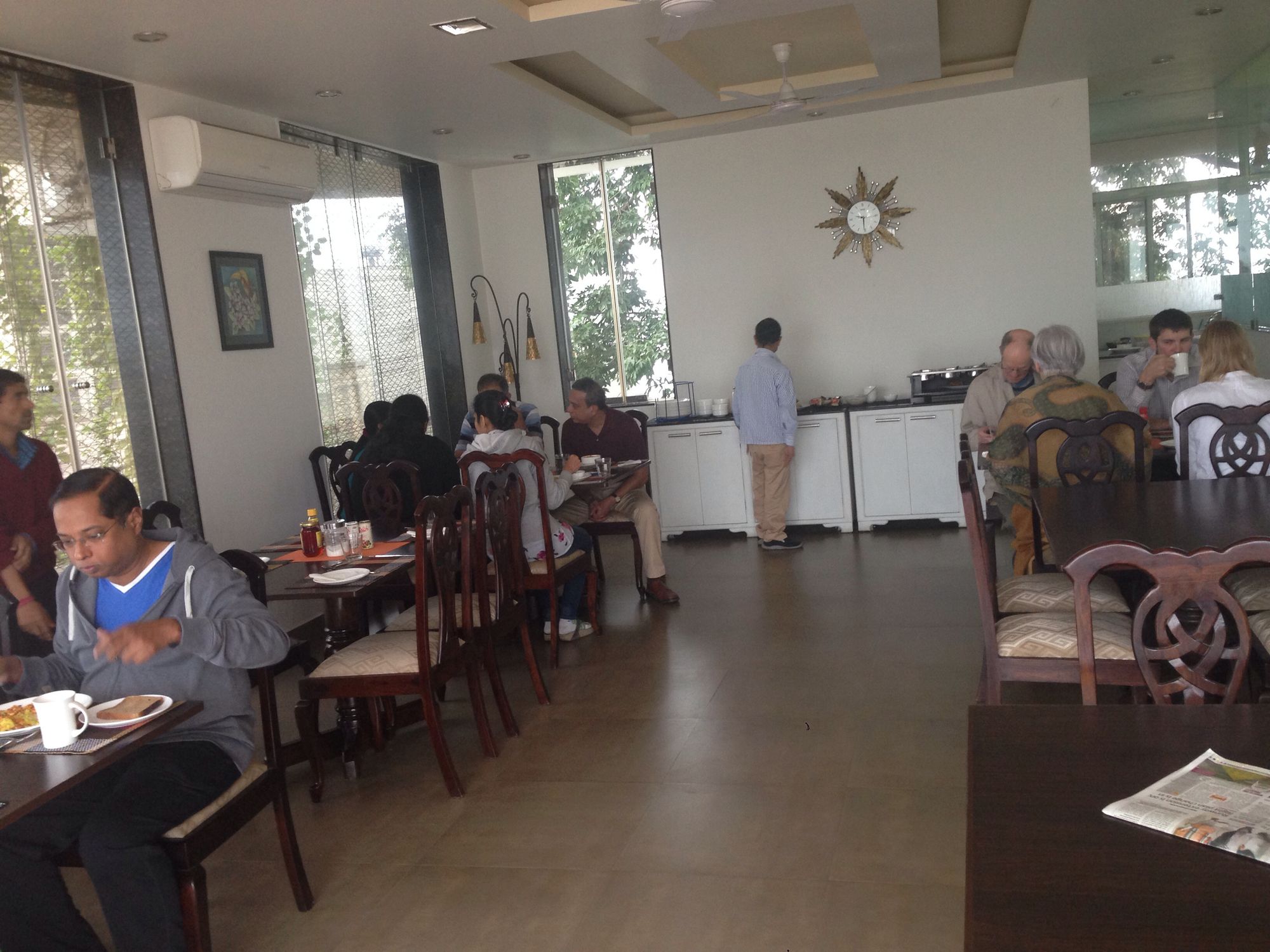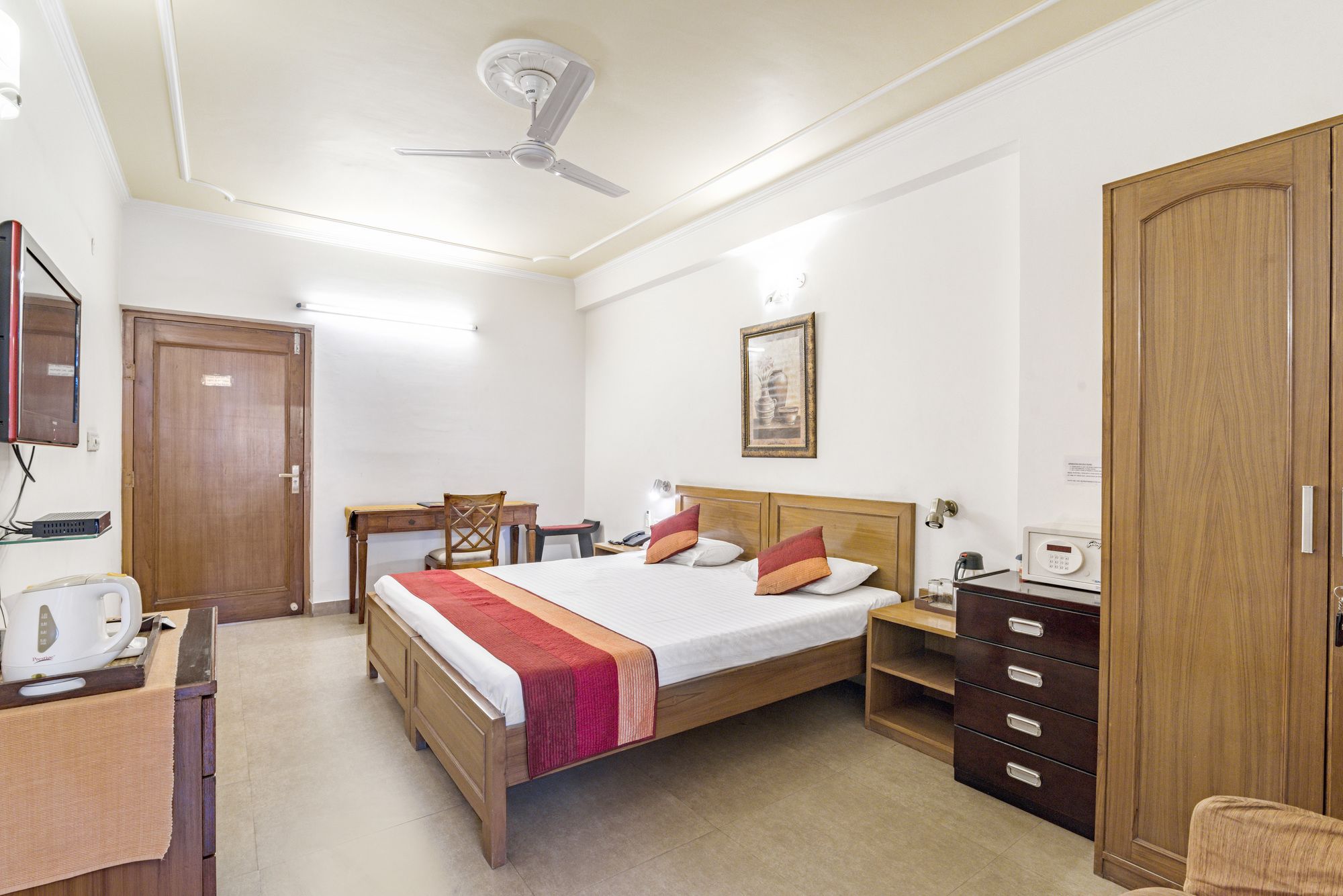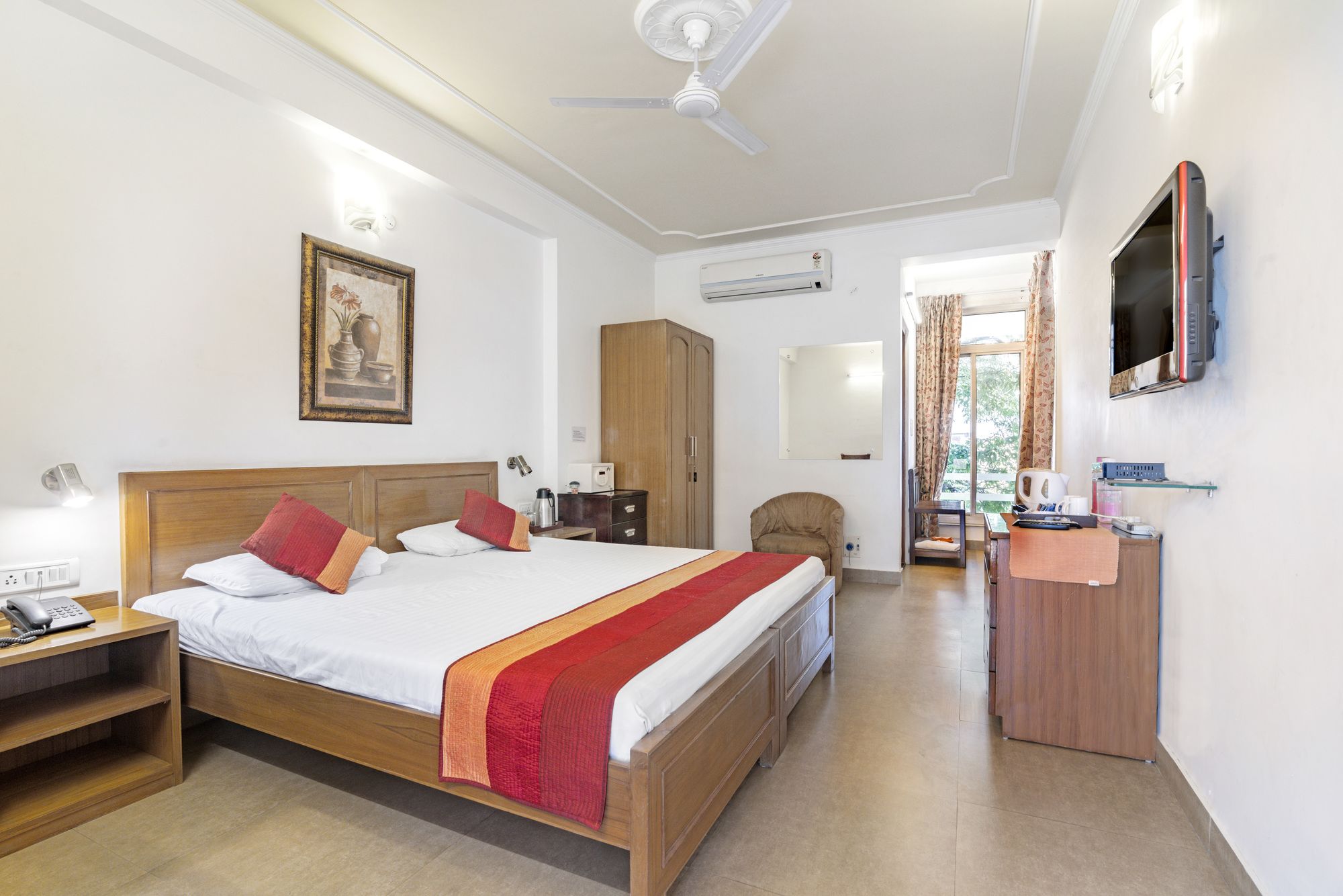Si decides alojarte en Girisadan Homestay, disfrutarás de una fantástica ubicación en pleno centro de Jaipur, a 3 min en coche de M.I. Road y a 7 de Auditorio Birla. Además, este hotel para familias se encuentra a 14,9 km de Fuerte de Amber y a 3,3 km de Jardines Ram Niwas. Te sentirás como en tu propia casa en cualquiera de las 50 habitaciones con frigorífico y minibar. La conexión a Internet wifi gratis te mantendrá en contacto con los tuyos; también podrás ver tu programa favorito en el televisor con canales por cable. El baño privado con ducha está provisto de artículos de higiene personal gratuitos y zapatillas. Entre las comodidades, se incluyen caja fuerte, escritorio y teléfono. No te pierdas las instalaciones recreativas a tu disposición, que incluyen gimnasio y bicicletas de alquiler. Encontrarás también conexión a Internet wifi gratis, servicio de canguro (de pago) y asistencia turística y para la compra de entradas. El servicio de transporte (de pago) te llevará a varios puntos imprescindibles de la zona. Puedes tomar una deliciosa comida en el restaurante Restaurant de este hotel o aprovechar el servicio de habitaciones que ofrece con horario limitado. Disfruta de un detalle de bienvenida gratuito organizado por la recepción todos los días, donde podrás conocer a otros huéspedes mientras tomas un bocado. Se sirve un desayuno a la carta todos los días de 7:30 a 9:30 con un coste adicional. Tendrás servicio de tintorería, consigna de equipaje y lavandería a tu disposición. Hay un aparcamiento sin asistencia gratuito disponible.