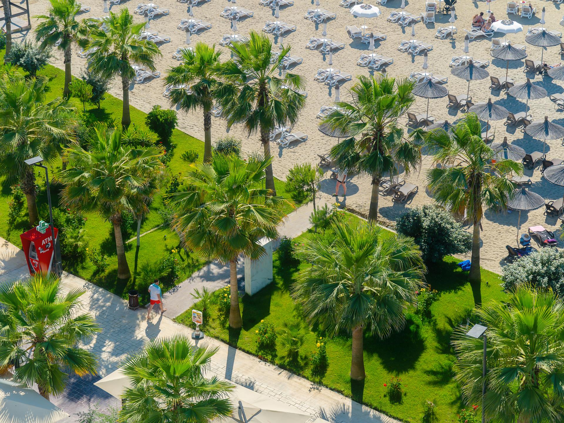 Unos 50 m de la playa privada y pública de arena está el hotel Gloria Palace Hotel & SPA. La distancia hasta el aeropuerto es de unos 44 km. La playa es supervisada por un socorrista y galardonada con bandera azul. Aquí hay disponibles colchonetas, s
