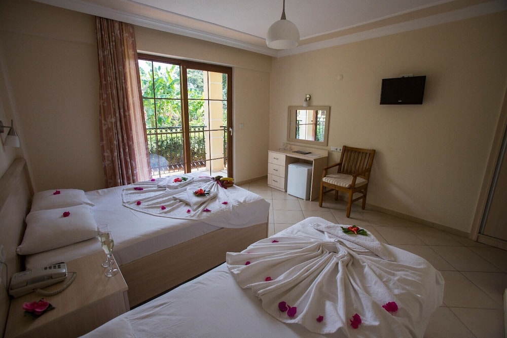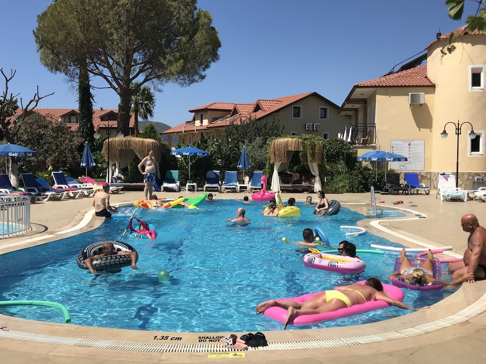 Los servicios e instalaciones incluyen: Recepción con caja fuerte (cargo extra), conexión Wi-Fi a Internet, restaurante, bares, piscina exterior, piscina para niños y zona de juegos. Parqueo privado disponible en el hotel.Las habitaciones están equipadas con: A / C , TV, teléfono, minibar, secador de pelo y balcón o terraza.Dirección: Babadag Yolu, Ovacik, Oludeniz, Fethiye, Turquía