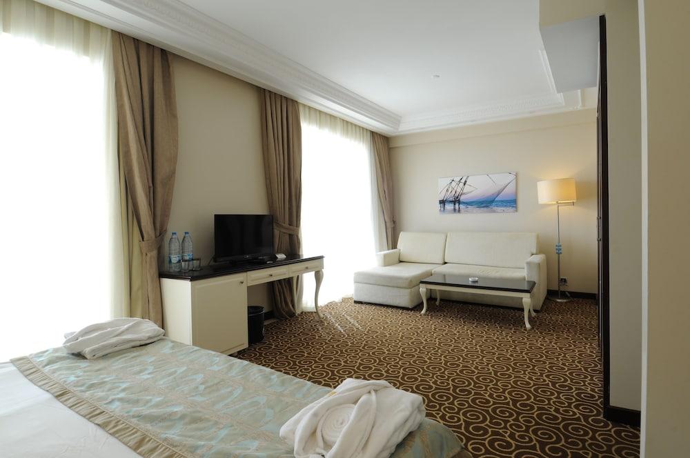 El Goldcity se encuentra a sólo cinco minutos de la playa y a 15 minutos del centro de la ciudad de Alanya. Con una ubicación tranquila en una colina entre las montañas de Taurus y el mar Mediterráneo, los huéspedes del Hotel Goldcity disfrutaran de magníficas vistas panorámicas de las montañas, plantaciones de frutales y la costa de Alanya. Además de una fantástica selección de opciones de alimentos y bebidas, el hotel también dispone de varias piscinas incluyendo una para niños, además de una variedad de espectáculos y actividades diarias para tu entretenimiento. A los más jóvenes les encantará el mini club, mientras que los adultos podrán relajarse en el centro de spa, uno de las más grandes y de alta tecnología de Turquía. El spa del Hotel Goldcity cuenta con 14 tipos masajes y cuidado de la piel, salas de tratamiento corporal, un baño turco auténtico, un centro médico, saunas, baños de vapor, duchas de masaje, una peluquería, un gimnasio, zonas de relajación y jacuzzi. Los huéspedes deportistas pueden disfrutar de patinaje sobre hielo, bolera, voleibol, mini golf, ciclismo, billar, tenis de mesa, equitación y deportes acuáticos. Se ofrece acceso a internet Wi-Fi disponible