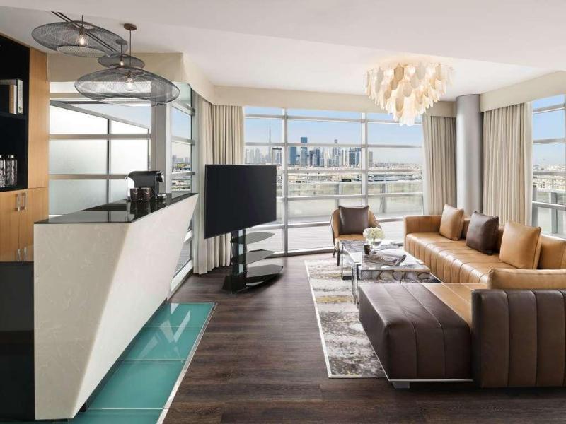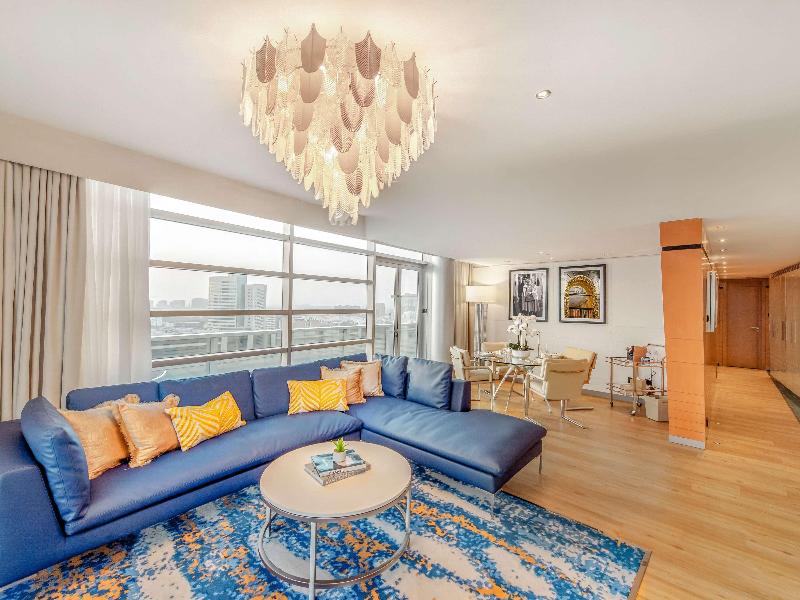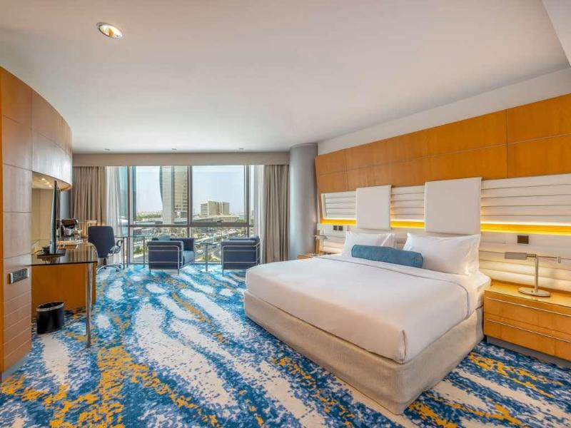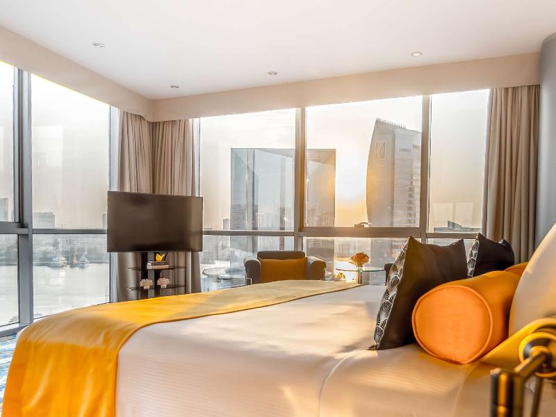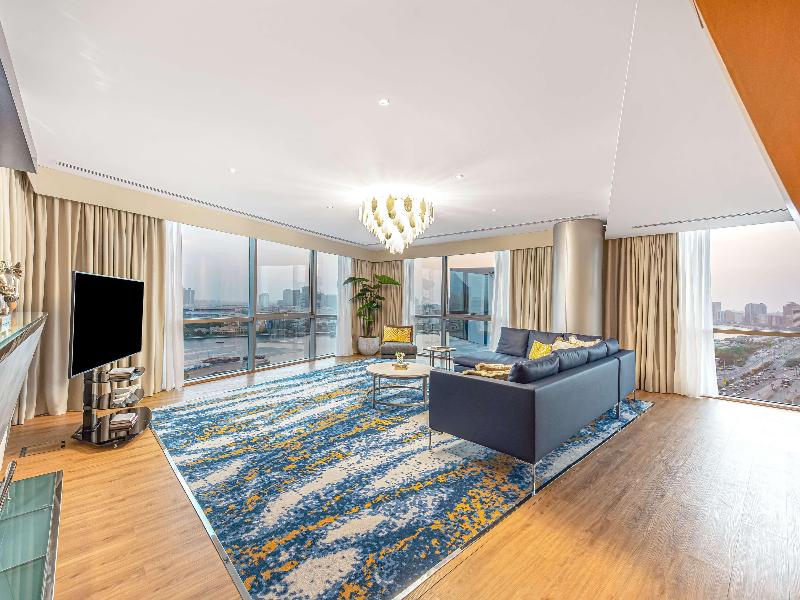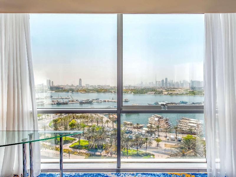 Ubicado en el distrito financiero Deira de Dubái, el Mövenpick Dubai Creek se encuentra a solo 20 minutos del Aeropuerto Internacional de Dubái y de la Zona Franca del Aeropuerto. El hotel ofrece 150 habitaciones y suites con impresionantes vistas del horizonte de la ciudad. Cada habitación cuenta con acceso a internet (de pago), un amplio escritorio y un televisor LCD de 32 pulgadas. Asciende de categoría a una habitación ejecutiva para acceder al Executive Lounge, que incluye desayuno, refrigerios y traslados al aeropuerto de cortesía. Cena en el Glasshouse Brasserie, que sirve cocina mediterránea, o disfruta de deportes en directo en el Issimo Bar. Los huéspedes pueden relajarse en la piscina de la azotea o utilizar el gimnasio completamente equipado. El hotel también ofrece modernos espacios para reuniones y un centro de negocios con todos los servicios, con wifi gratuito en todas las zonas comunes.