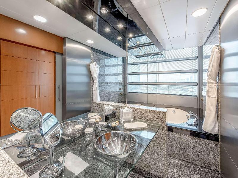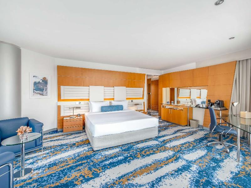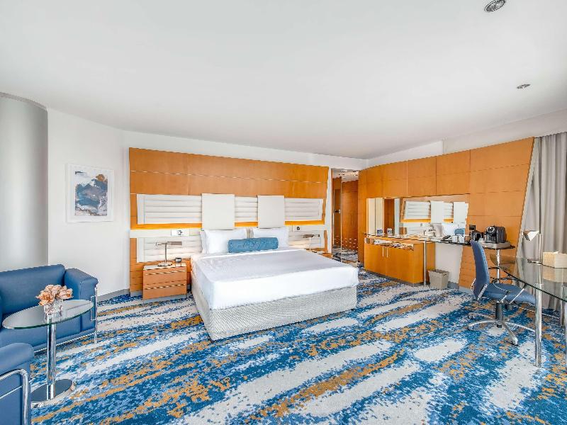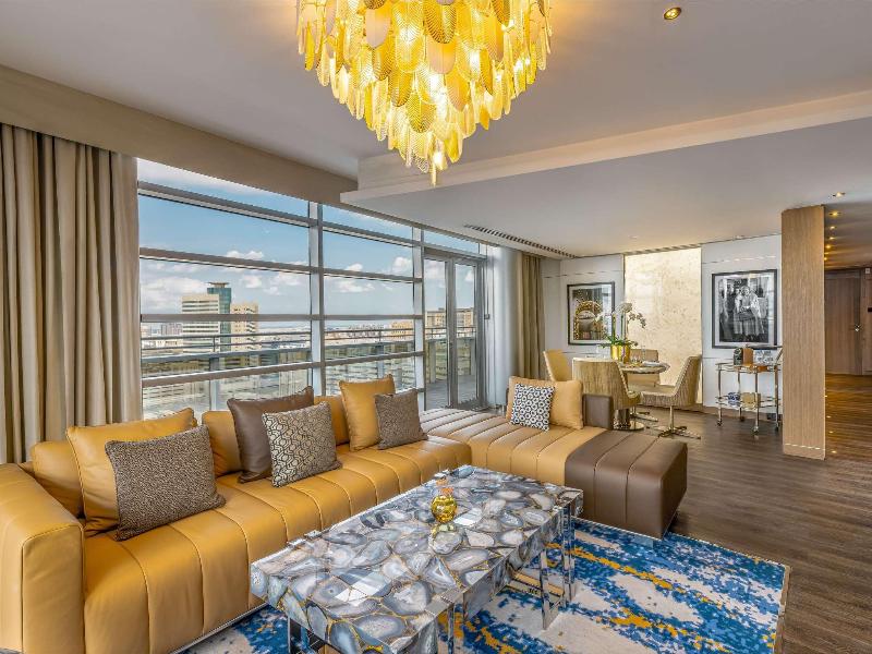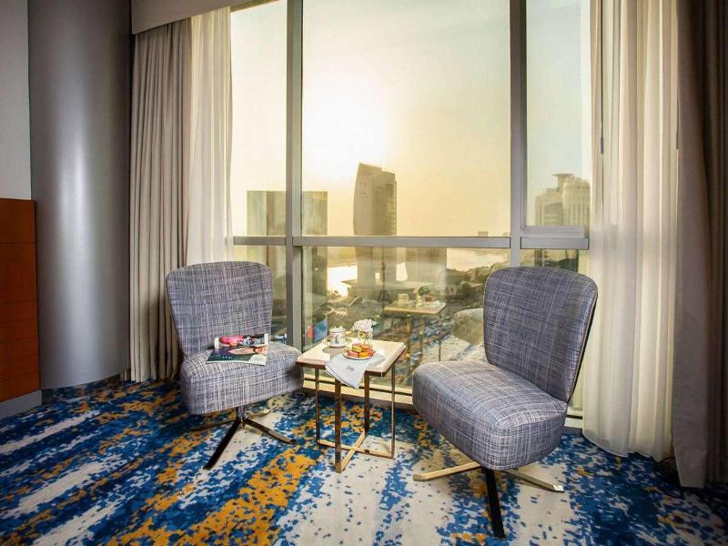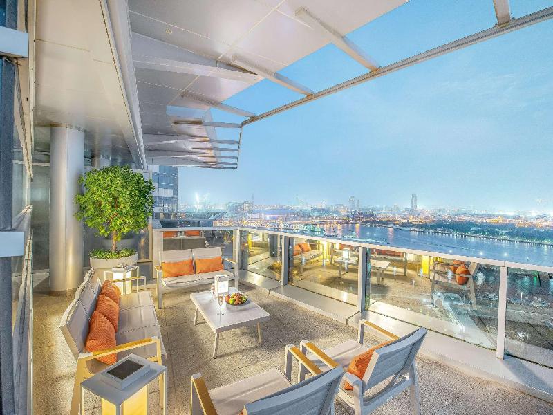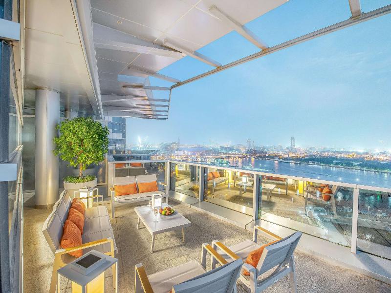 Ubicado en el distrito financiero Deira de Dubái, el Mövenpick Dubai Creek se encuentra a solo 20 minutos del Aeropuerto Internacional de Dubái y de la Zona Franca del Aeropuerto. El hotel ofrece 150 habitaciones y suites con impresionantes vistas del horizonte de la ciudad. Cada habitación cuenta con acceso a internet (de pago), un amplio escritorio y un televisor LCD de 32 pulgadas. Asciende de categoría a una habitación ejecutiva para acceder al Executive Lounge, que incluye desayuno, refrigerios y traslados al aeropuerto de cortesía. Cena en el Glasshouse Brasserie, que sirve cocina mediterránea, o disfruta de deportes en directo en el Issimo Bar. Los huéspedes pueden relajarse en la piscina de la azotea o utilizar el gimnasio completamente equipado. El hotel también ofrece modernos espacios para reuniones y un centro de negocios con todos los servicios, con wifi gratuito en todas las zonas comunes.