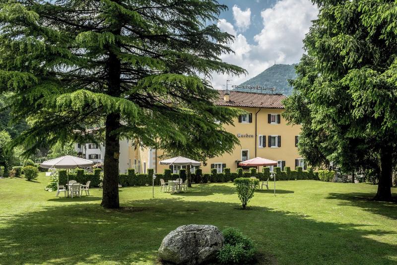 Gran hotel en el hermoso valle de Ledro, impresionantes jardines y piscina con montañas de fondo, personal amable increíble desayuno y alquiler de bicicletas gratis un refugio junto al lago y las...