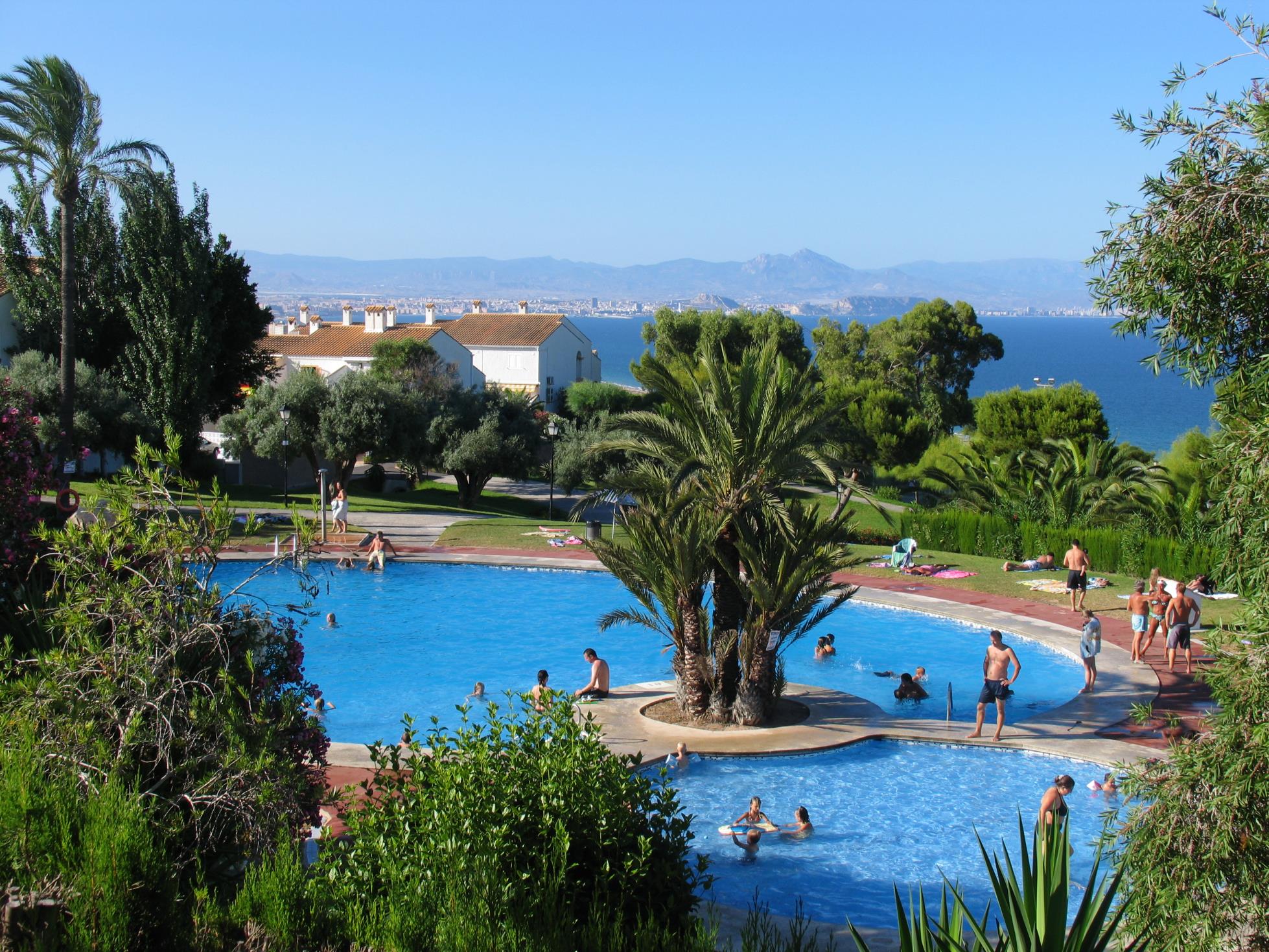 La urbanización está cerrada con guardias, tiene 2 grandes piscinas (28 m y 18 m respectivamente), 2 pistas de tenis y 2 pistas de petanca. También hay una tienda/café abierta la mayor parte del año (busque Treffen en el apartado Información práctica). Vende pan fresco a diario, un surtido de comestibles que incluye un surtido limitado de frutas y verduras y periódicos escandinavos. También ofrecen un número limitado de platos de comida.
