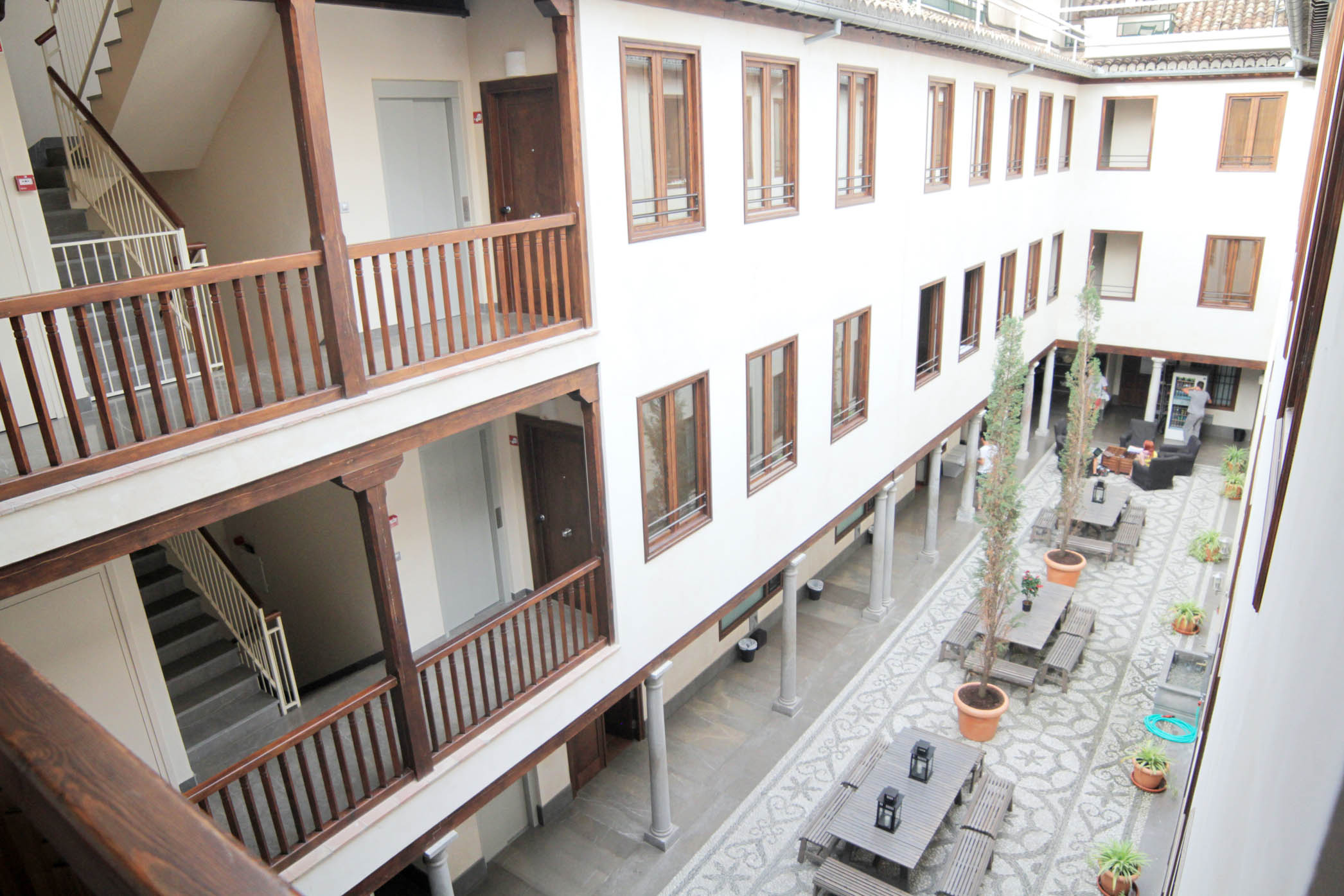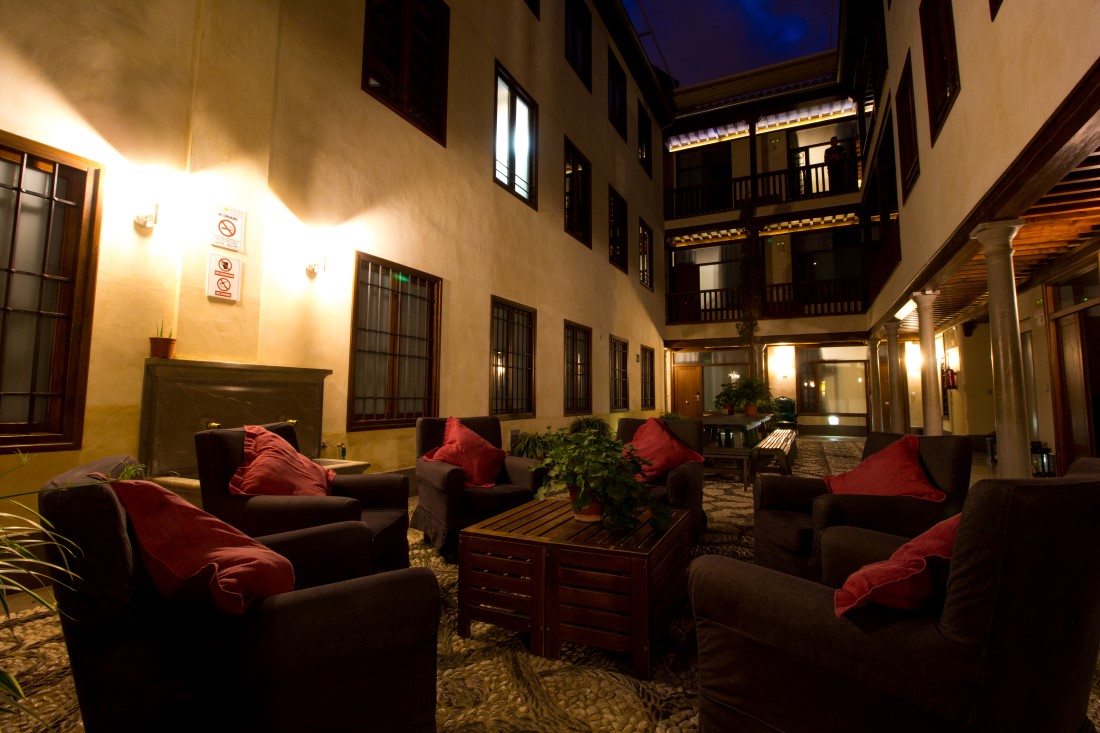 La zona comn con su empedrado antiguo rodeado de grandes ventanales de madera y el ruido del agua de la fuente central, hacen que este sitio de la sensacin de encontrarse en un autntico patio andaluz. Te harn sentir como en casa ofreciendo una sangra, enseando a cocinar paella o contndote todo lo que puedes hacer para vivir una autntica experiencia local.