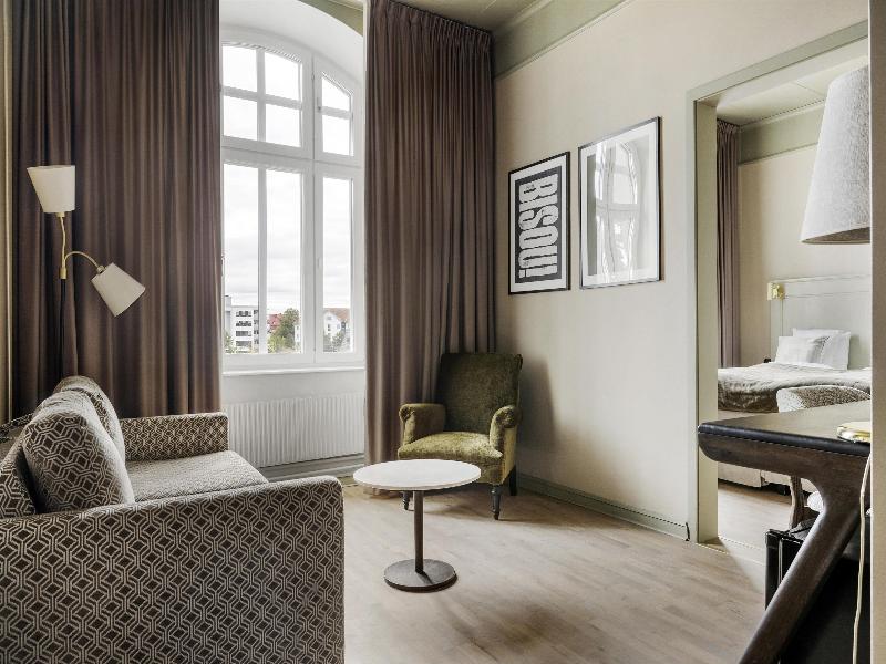 El Best Western Plus Grand Hotel está situado en el centro, junto a la estación principal de tren, cerca de tiendas y restaurantes. El hotel ofrece a viajeros de negocios y de placer un servicio excelente, personal multilingüe, una amplia gama de actividades y 114 cómodas habitaciones con internet inalámbrico gratuito. En el bar del hotel puedes relajarte con una bebida fría o disfrutar de una agradable cena en el acogedor restaurante, que ofrece una carta completa, desde un generoso desayuno buffet hasta almuerzos populares y cenas exquisitamente preparadas. Cuando el tiempo lo permite, el jardín está abierto con su amplia y soleada terraza. El departamento de conferencias ofrece salas de reuniones, un salón relajante y un cálido servicio personalizado. En el vestíbulo puedes consultar tu correo electrónico en nuestro ordenador de cortesía. Hay mucho que hacer y ver en Halmstad, como ir de compras, disfrutar de la vida nocturna y de sus hermosas playas. A menos de 15 kilómetros encontrarás ocho excelentes campos de golf, todos ellos colaboradores nuestros. No manejamos efectivo en el hotel, pero puedes traer tu tarjeta de débito o crédito, ya que aceptamos ambas.
