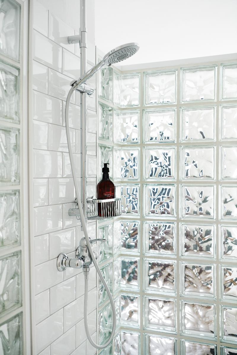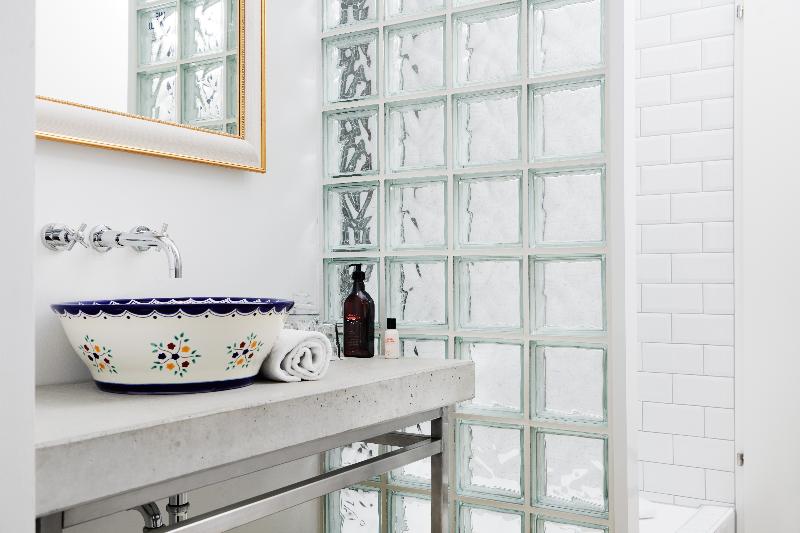 La habitación tiene una distribución original con baño y dormitorio integrado en el mismo espacio.