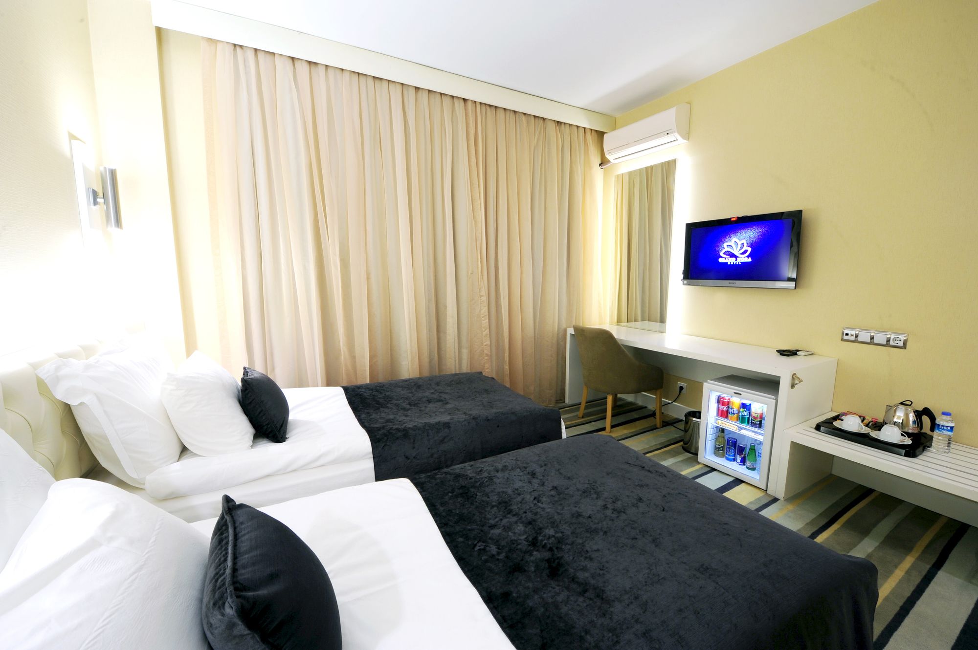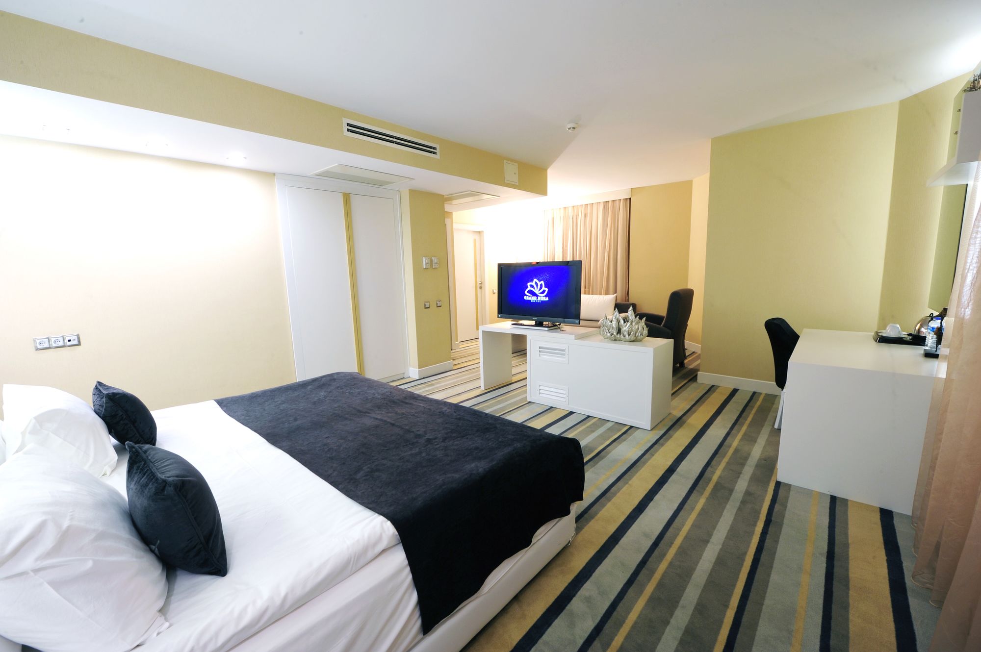 Si te alojas en Grand Nora Hotel , disfrutarás de una céntrica ubicación en Ankara, a 8 min en coche de Instituto Goethe y a 13 min de Museo Etnográfico. Además, este hotel se encuentra a 7 km de Columna de Juliano y a 7,3 km de Mezquita Haci Bayram. Te sentirás como en tu propia casa en cualquiera de las 30 habitaciones con aire acondicionado, minibar y televisor LCD. Mantén el contacto con los tuyos gracias a la conexión a Internet wifi gratis. El cuarto de baño está provisto de ducha y secador de pelo. Entre las comodidades, se incluyen escritorio, además de un servicio de limpieza disponible todos los días. Con jardín donde descansar y comodidades como conexión a Internet wifi gratis y servicios de conserjería, ¡no te faltará de nada! Grand Nora Hotel sirve deliciosas comidas en AÇIK BÜFE. Qué mejor forma de acabar el día que con una bebida en el bar o lounge. Se sirve un desayuno bufé gratuito todos los días de 7:00 a 10:30. Tendrás check-in exprés, periódicos gratuitos en el vestíbulo y servicio de tintorería a tu disposición. Hay un aparcamiento con asistencia gratuito disponible.