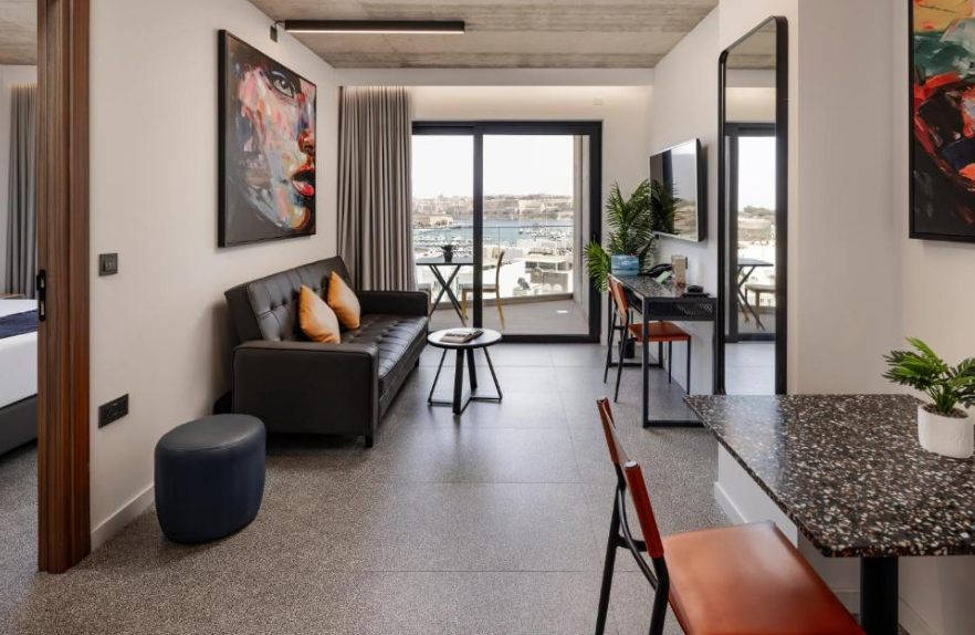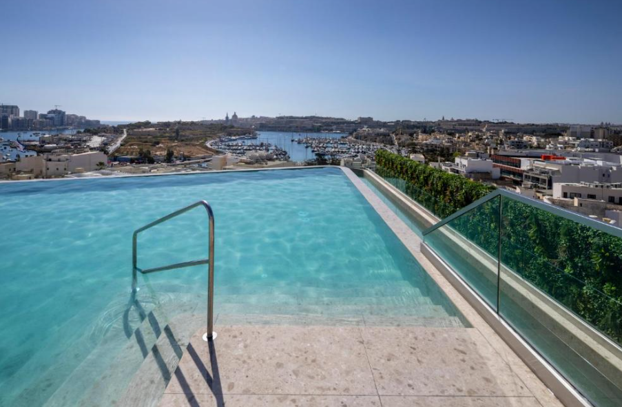 El Grands Suites Hotel Residences & Spa en Malta ofrece una estancia de lujo con un ambiente relajante y exclusivo. Este hotel de 4 estrellas cuenta con amplias suites equipadas con cocina completa, Wi-Fi gratuito, aire acondicionado y balcón privado. Sus instalaciones incluyen spa, piscina al aire libre, gimnasio y restaurante gourmet. Ideal para quienes buscan confort y bienestar cerca de la playa y del centro histórico.