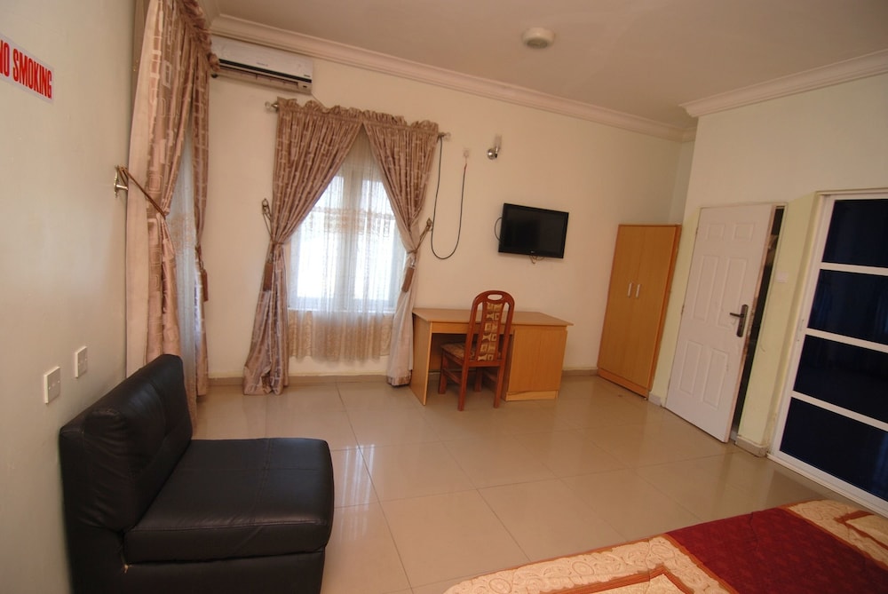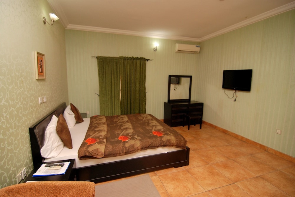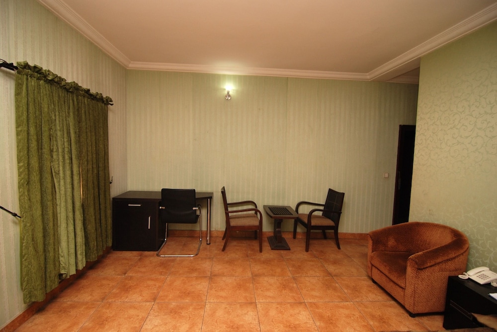 Elige Grandville Hotel & Resort en Abuya y estarás a poca distancia de Centro comercial Jabi Lake. Este establecimiento se encuentra a pocos kilómetros de Parque de atracciones Wonderland y de Abuja Stadium (estadio). Te sentirás como en tu propia casa en cualquiera de las 37 habitaciones. En Grandville Hotel & Resort tienes un restaurante a tu disposición para comer algo. Apaga la sed con tu bebida favorita en el bar o lounge. Tendrás centro de negocios, servicio de limusina o coche con chófer y servicio de tintorería a tu disposición. Hay un aparcamiento sin asistencia gratuito disponible.