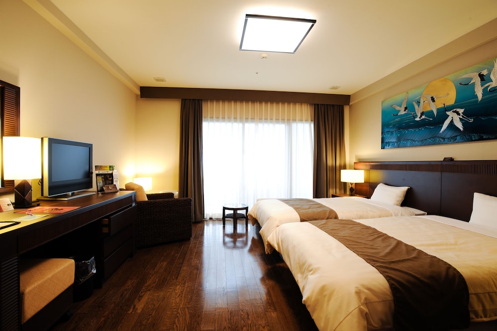 Desde Grandvrio Resort Ishigakijima Oceans Wing Hotel, en Isla Ishigaki, tendrás fácil acceso a Templo Fusaki Kannon-do y a Faro Kannonzaki. Este complejo se encuentra cerca de Tojinbaka y de Observatorio astronómico de Ishigakijima.Habitaciones Te sentirás como en tu propia casa en una de las 200 habitaciones con aire acondicionado y frigorífico. Las habitaciones disponen de balcón. Para los momentos de ocio, tienes un televisor con canales por satélite y conexión a Internet por cable y wifi gratis. El baño privado con bañera y ducha independientes está provisto de bañera profunda y artículos de higiene personal gratuitos. Relájate en el spa completo, que ofrece masajes, tratamientos corporales y tratamientos faciales. Aprovecha las instalaciones recreativas, que incluyen piscina al aire libre, piscina cubierta y sauna. Encontrarás también conexión a Internet wifi gratis, sala de juegos electrónicos o de mesa y tienda de recuerdos o quiosco.Para comer Acércate a uno de los 3 restaurantes o a la cafetería de este complejo para comer algo. Apaga la sed con tu bebida favorita en el bar o lounge.Servicios de negocios y otros Tendrás conexión a Internet de alta velocidad por cable (gratuita), centro de negocios y servicio de tintorería a tu disposición. Se ofrece servicio de transporte al aeropuerto (ida y vuelta) sin costes adicionales.