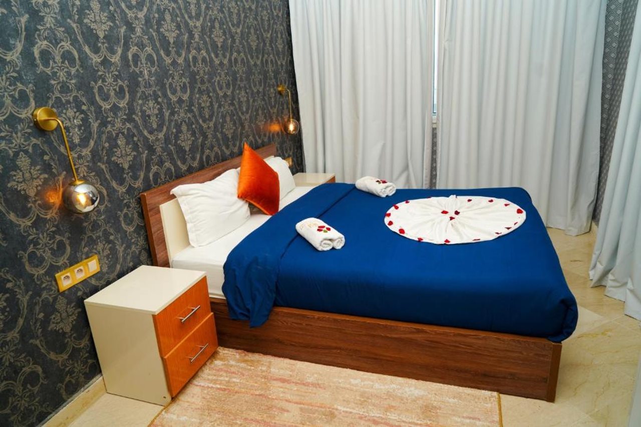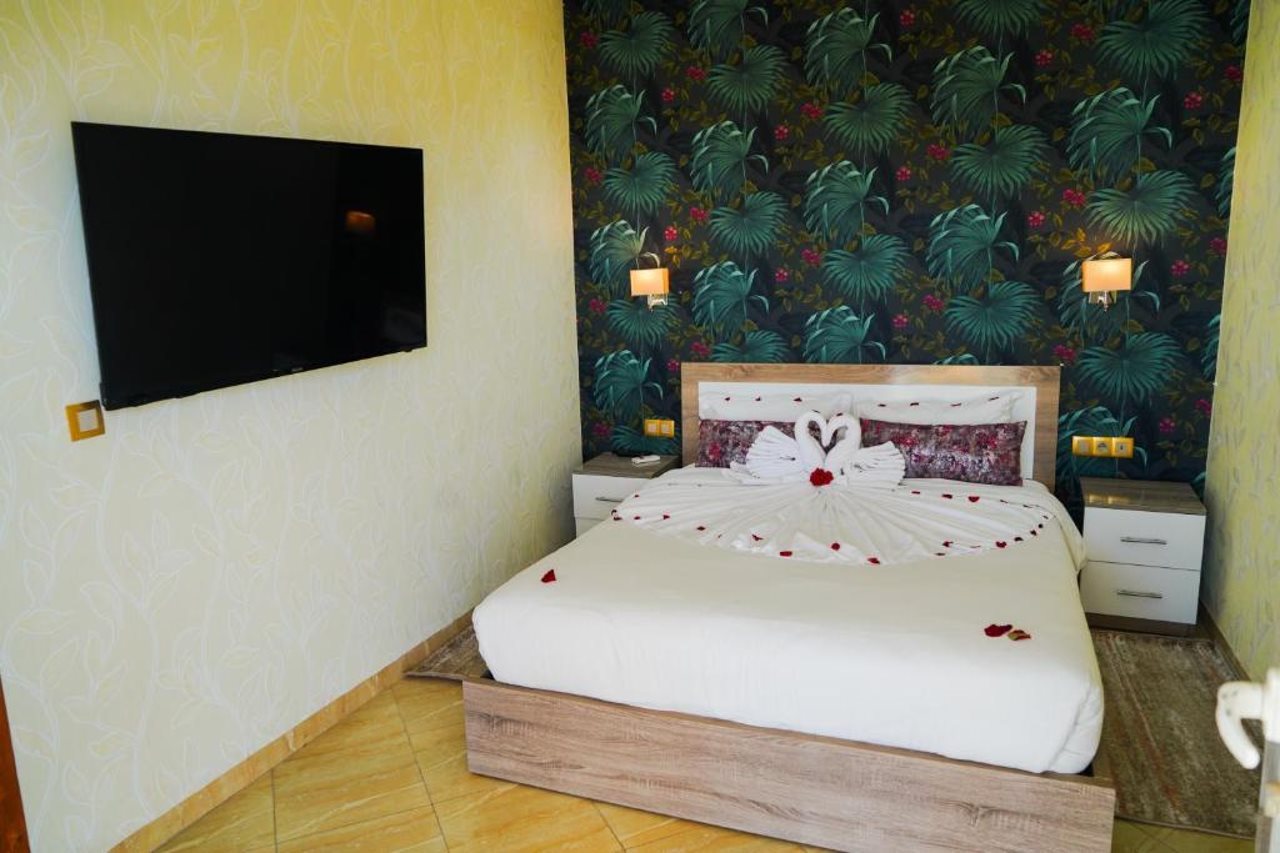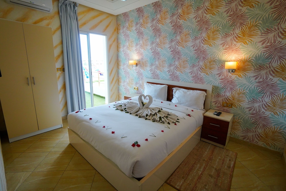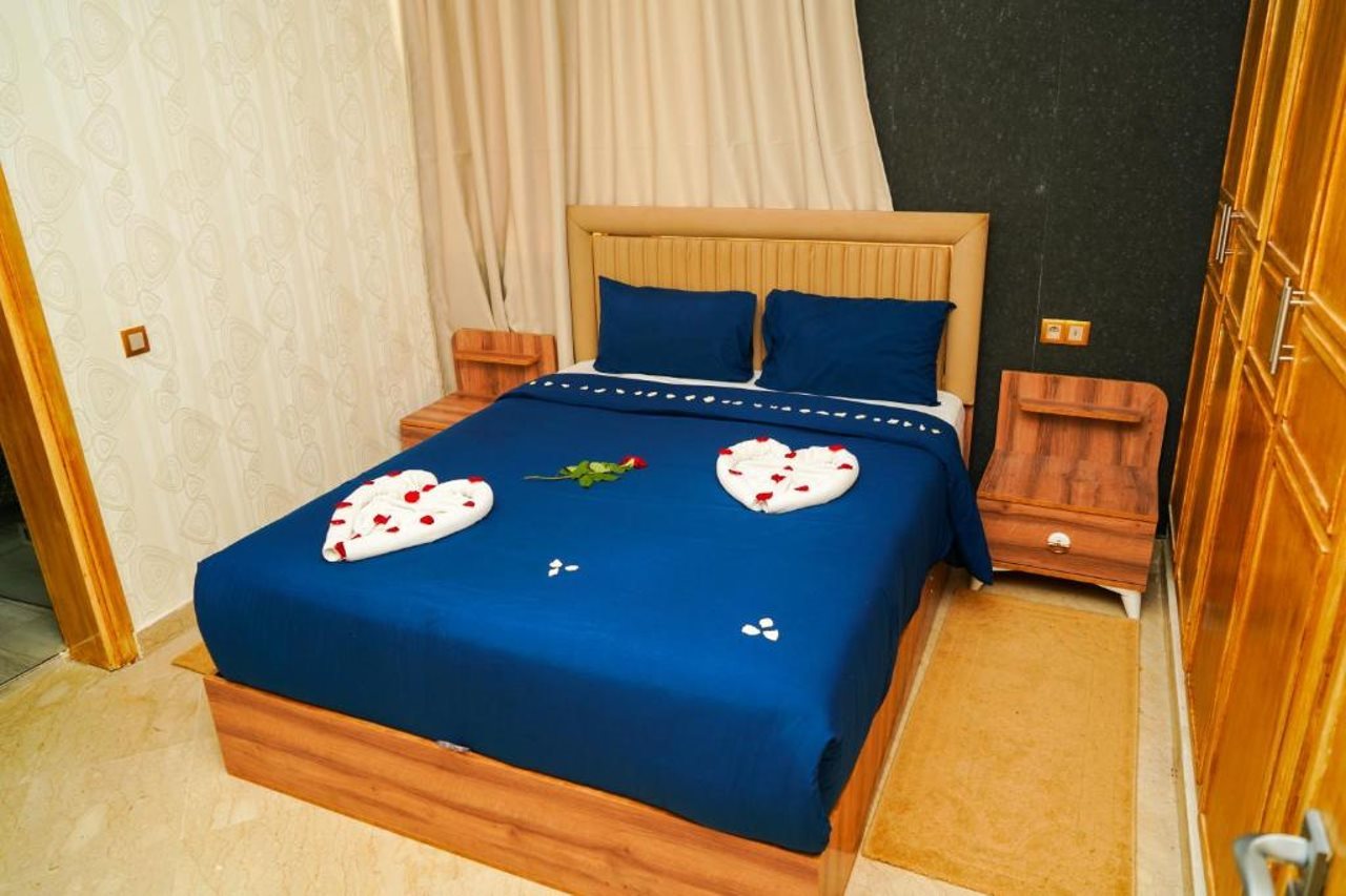 El hotel ofrece instalaciones y servicios que incluyen recepción 24 horas, aire acondicionado, WiFi, aparcamiento, zona de juegos infantiles, piscina, restaurante, caja fuerte, ascensor, personal multilingüe e instalaciones de Spa.Las habitaciones disponen de aire acondicionado, WiFi, caja fuerte (con cargo adicional), TV, balcón, terraza, cocina americana, minibar, microondas, cafetera/tetera, secador de pelo y teléfono.Dirección: RESIDENCE KHALIJ NAKHIL LOT G7 CITE FOUNTY SONABA, 80000 Agadir, Marruecos.