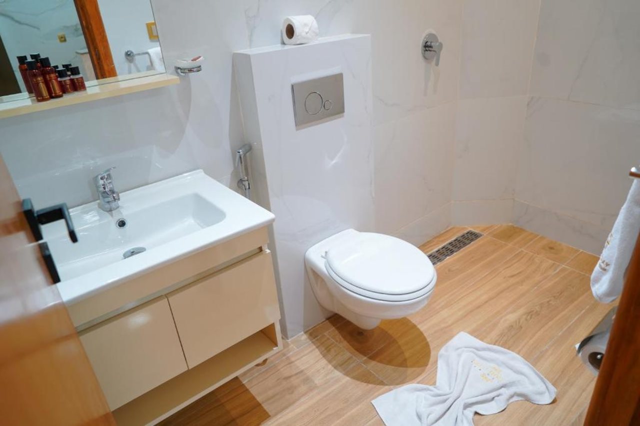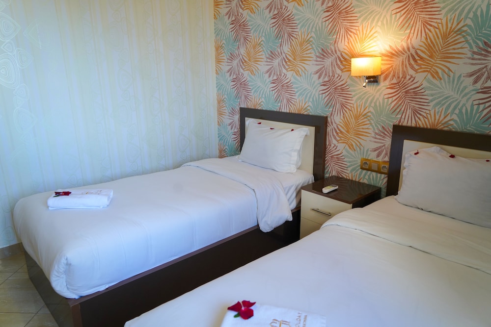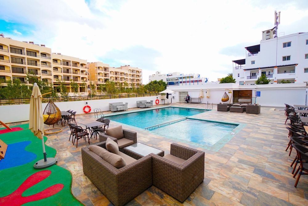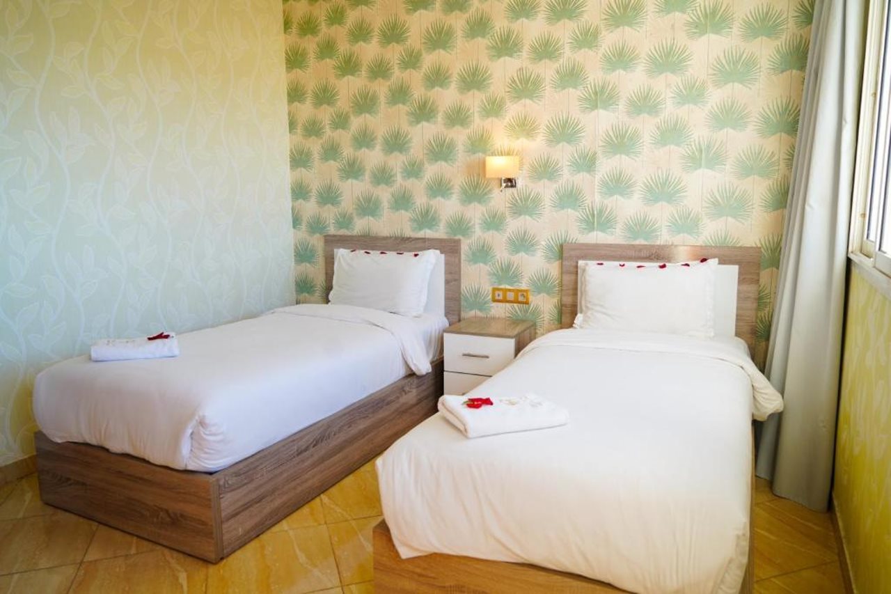 El hotel ofrece instalaciones y servicios que incluyen recepción 24 horas, aire acondicionado, WiFi, aparcamiento, zona de juegos infantiles, piscina, restaurante, caja fuerte, ascensor, personal multilingüe e instalaciones de Spa.Las habitaciones disponen de aire acondicionado, WiFi, caja fuerte (con cargo adicional), TV, balcón, terraza, cocina americana, minibar, microondas, cafetera/tetera, secador de pelo y teléfono.Dirección: RESIDENCE KHALIJ NAKHIL LOT G7 CITE FOUNTY SONABA, 80000 Agadir, Marruecos.