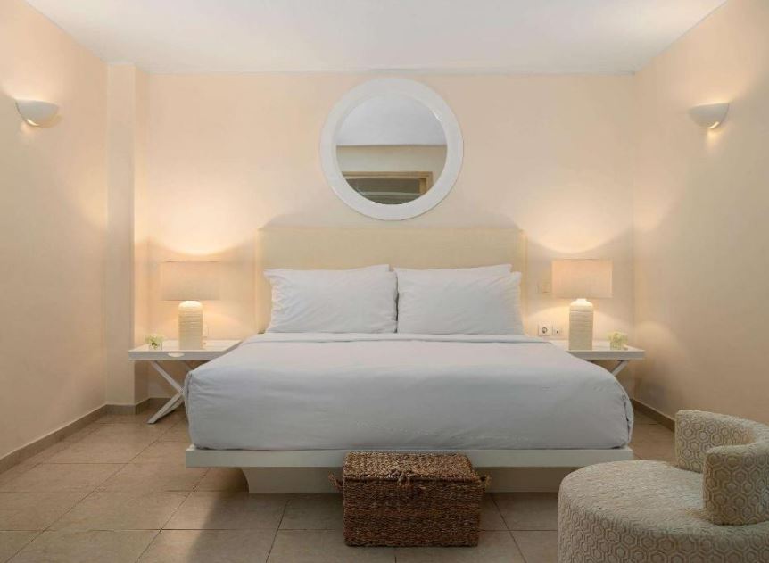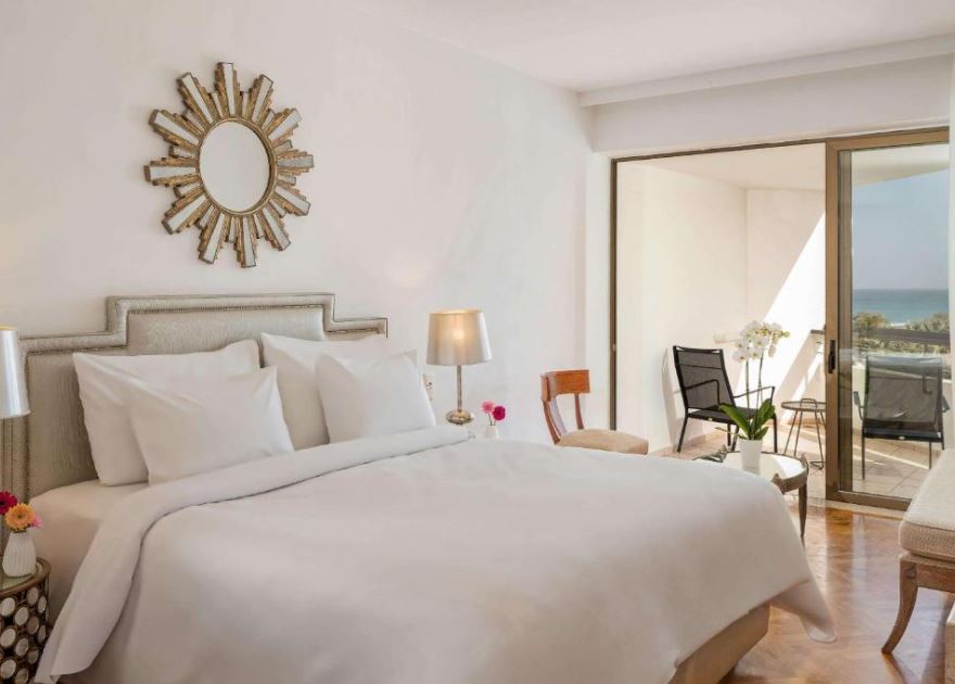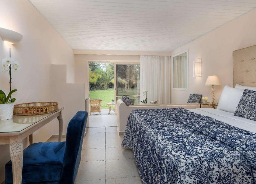 Las habitaciones del Grecotel Creta Palace son elegantes y disponen de aire acondicionado, suelo de madera, minibar, TV de pantalla plana vía satélite y equipo de música pequeño. Se proporcionan albornoces y zapatillas de modo gratuito.