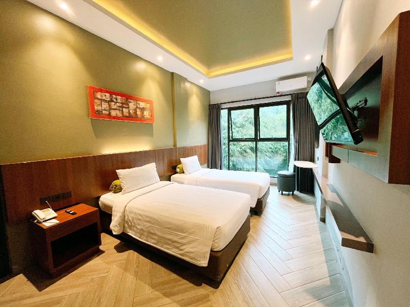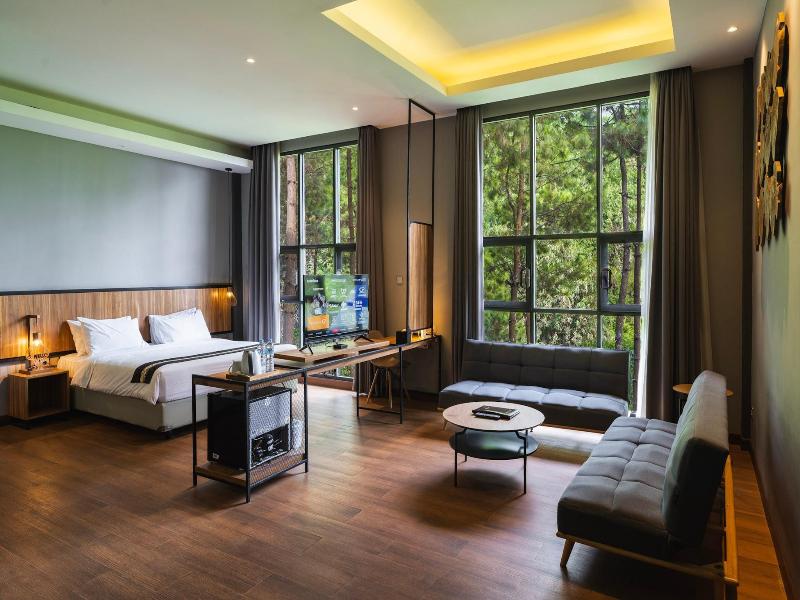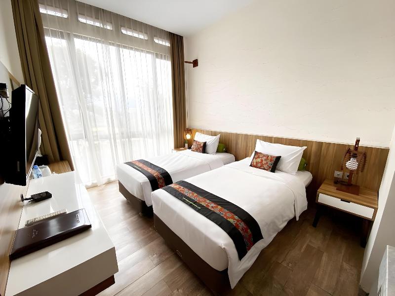 Enclavado en la belleza natural de Cihideung, Bandung, este hotel ofrece una escapada tranquila a solo 120 minutos del aeropuerto. El relajante sonido del río y el canto de los pájaros complementan las encantadoras cabañas de madera, cada una con baño privado y balcón. Los huéspedes también pueden disfrutar de comidas en el hotel y tratamientos de spa. Las habitaciones están confortablemente amuebladas con madera natural y equipadas con minibar, baño privado con agua caliente, TV, cafetera y teléfono con identificador de llamadas.