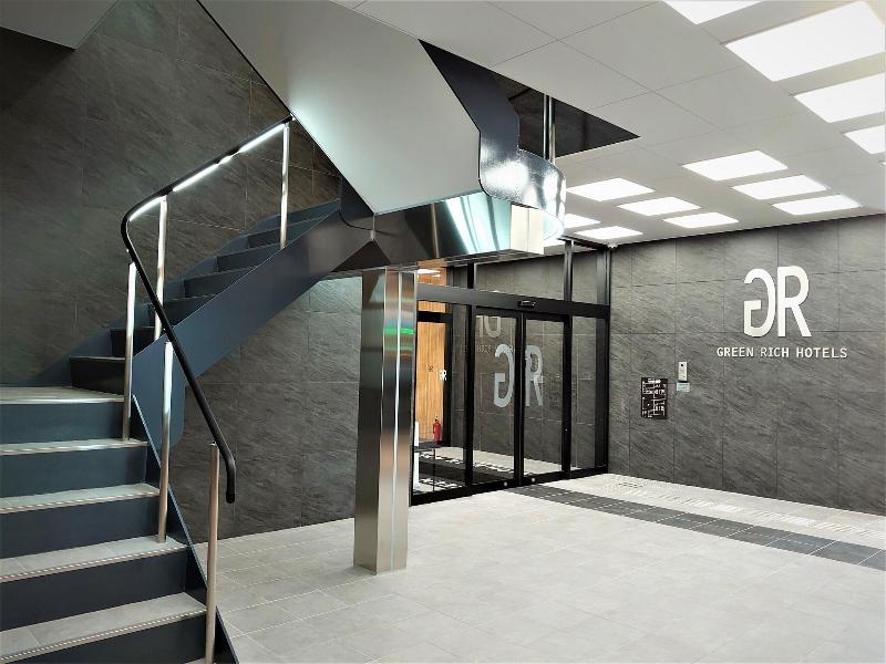 米子駅前で一番新しいホテルです。米子駅から徒歩5分で到着出来ます。フロントは2階にありますが、エレベーターが2基あり、大きな荷物があっても大丈夫です。セキュリティもルームキーがないと、エレベーターで客室階には行けないので安心です。