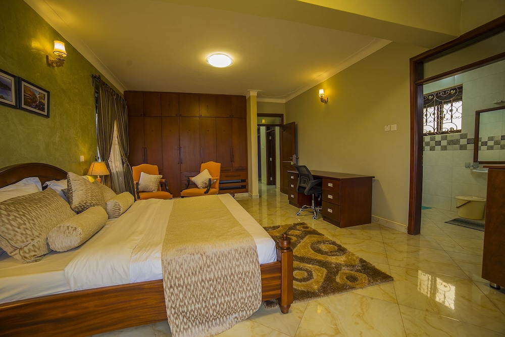 En Greens Guest Homes gozarás de una buena ubicación en Kampala, en las afueras, en los alrededores de Palacio de Kabaka y Embajada de Estados Unidos. Esta casa de huéspedes se encuentra a pocos kilómetros de Catedral de Rubaga y de Parlamento de Buganda. Disfruta de una agradable estancia en una de las 7 habitaciones con televisor de pantalla plana. En tus ratos libres tendrás un televisor con canales por cable para entretenerte. El baño privado está provisto de bañera profunda y artículos de higiene personal gratuitos. Entre las comodidades, se incluyen escritorio y cafetera y tetera, además de un servicio de limpieza disponible todos los días. Con una terraza y jardín donde descansar y comodidades como un televisor en la zona común, ¡no te faltará de nada! Prueba deliciosos platos sin moverte de esta casa de huéspedes, que cuenta con un restaurante y ofrece servicio de habitaciones con horario limitado. Se ofrece un desayuno continental gratuito todos los días de 7:00 a 9:30. Tendrás periódicos gratuitos en el vestíbulo, consigna de equipaje y una lavandería a tu disposición. Pagando un pequeño suplemento podrás aprovechar prestaciones como servicio de transporte al aeropuerto (ida y vuelta) (disponible las 24 horas) y aparcamiento sin asistencia gratuito.